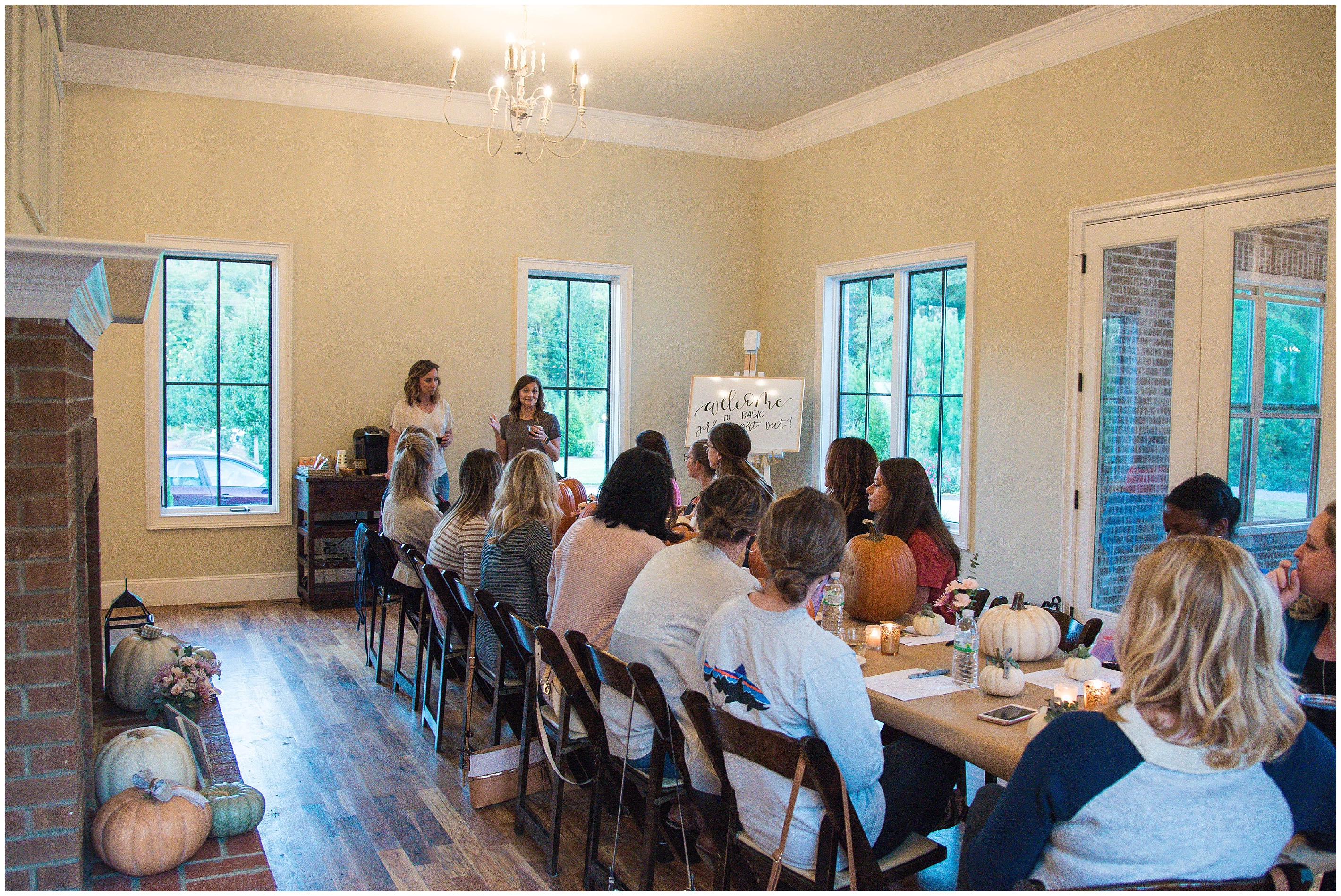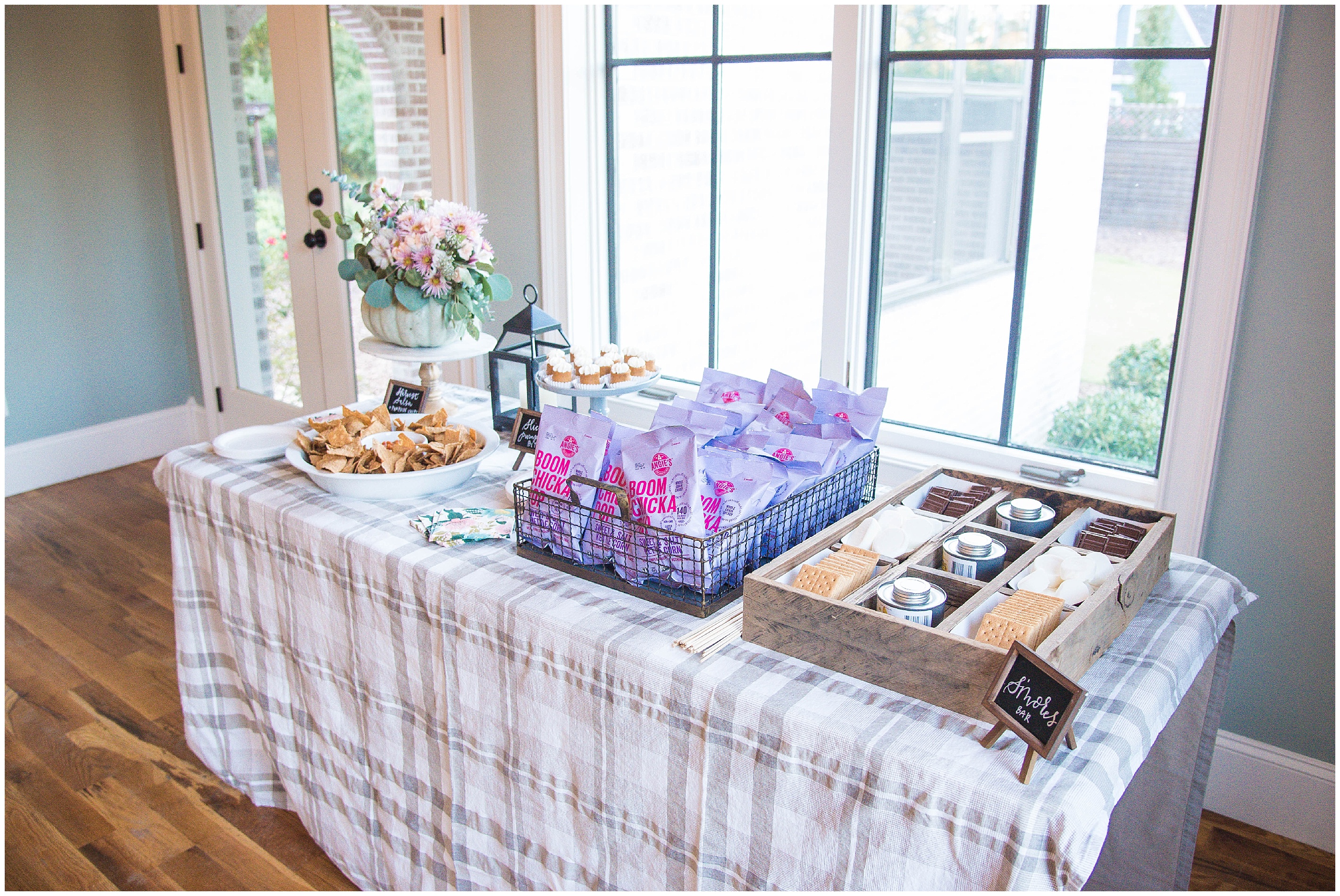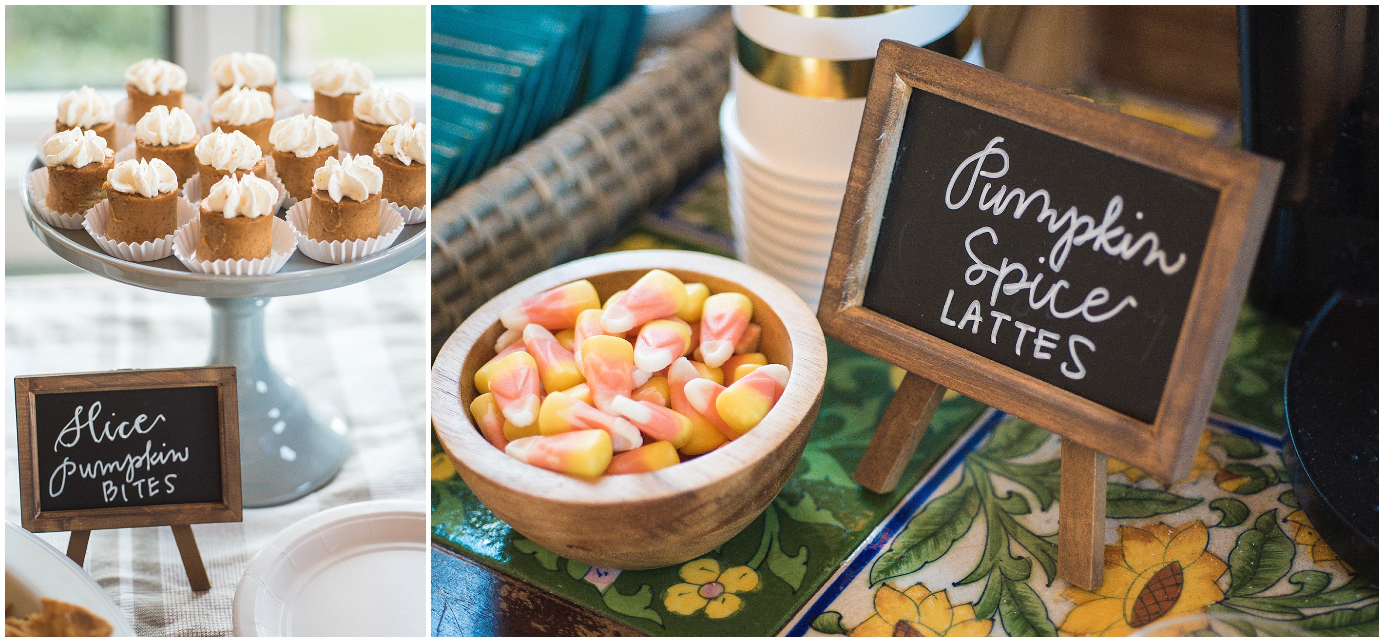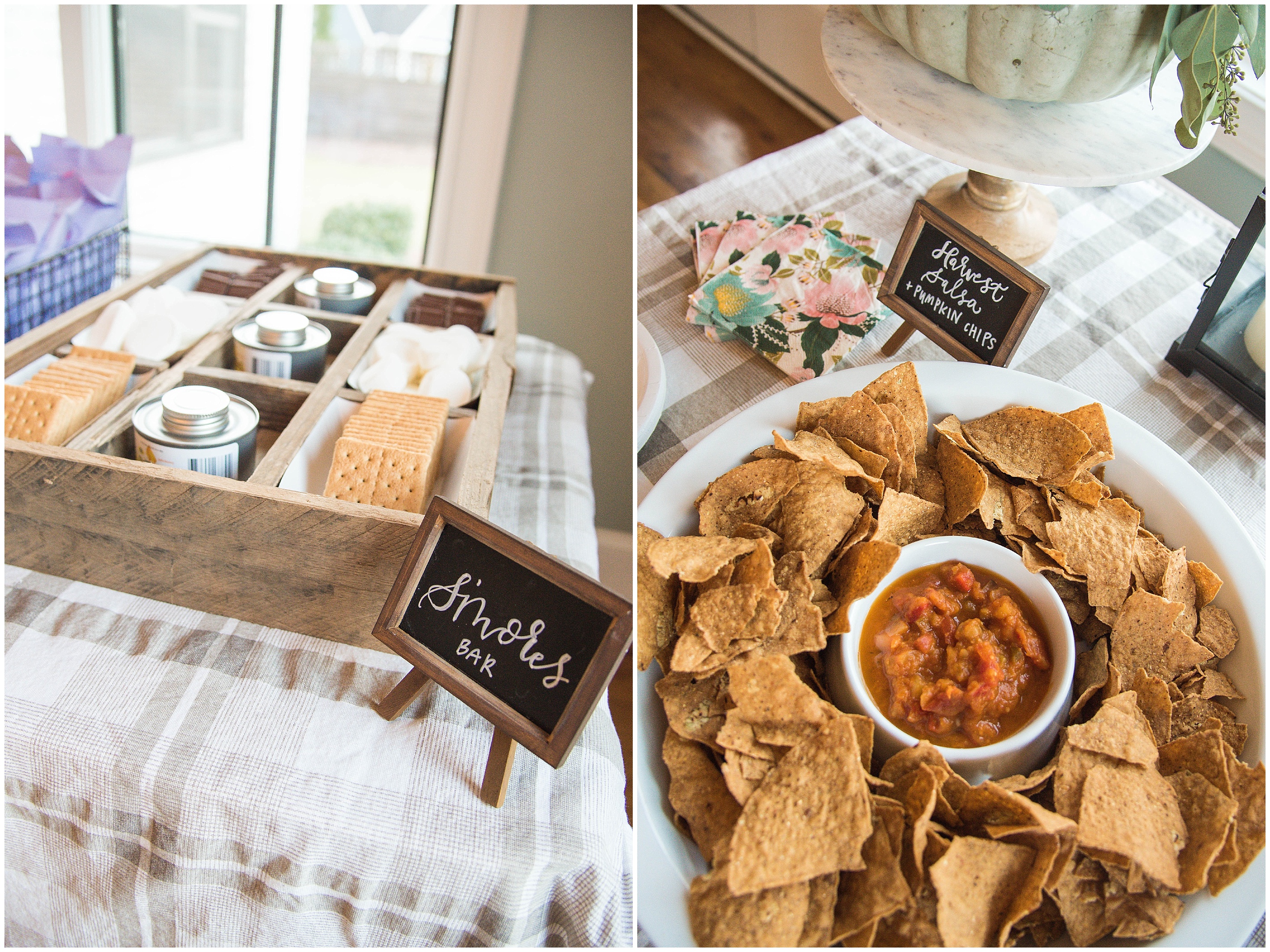 Caitlin of Happy Tines and Amanda of Amanda Blair by Designs put together this wonderful event. This was hosted at The Bradford in New Hill, NC which is an amazing event and wedding venue! They started off the evening with wine, pumpkin spice lattes, smores, kettle corn,, candy corn, pumpkin bites and fall chips & salsa!
