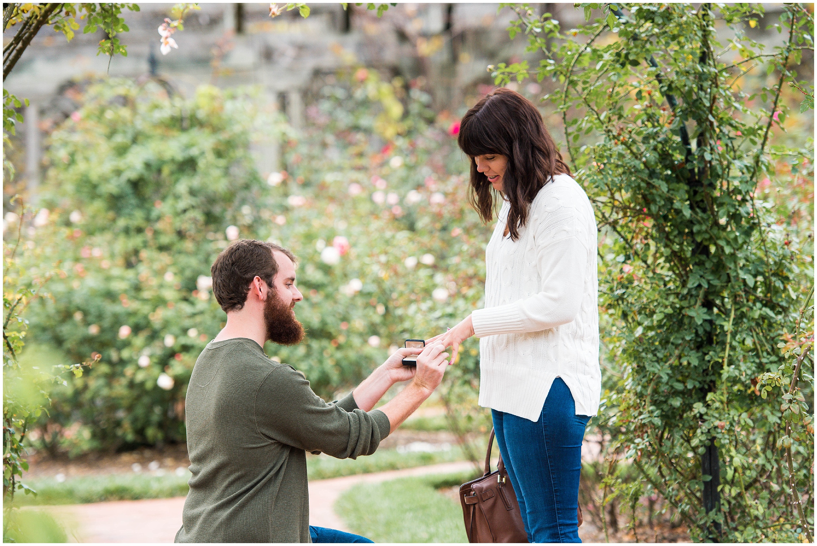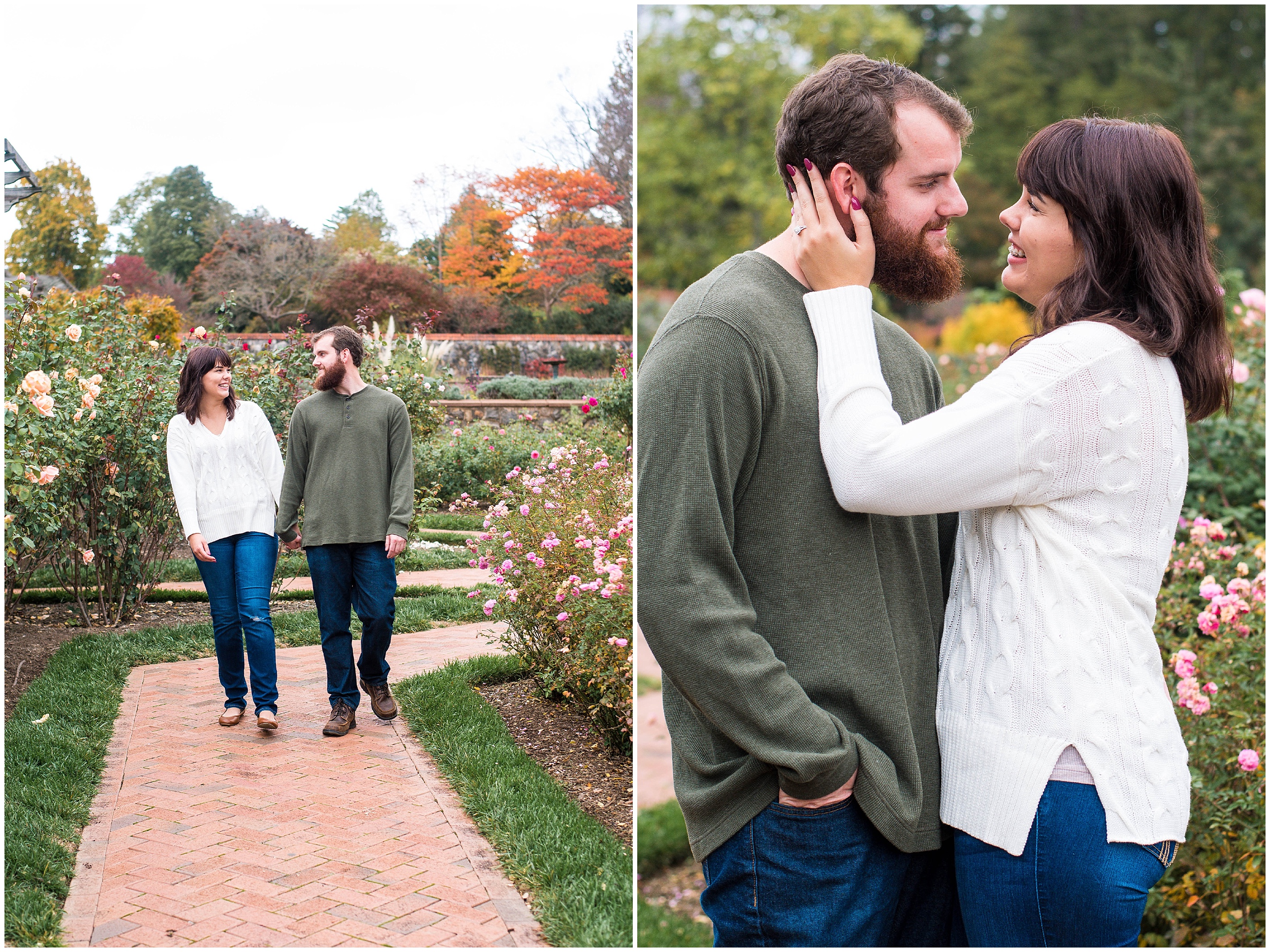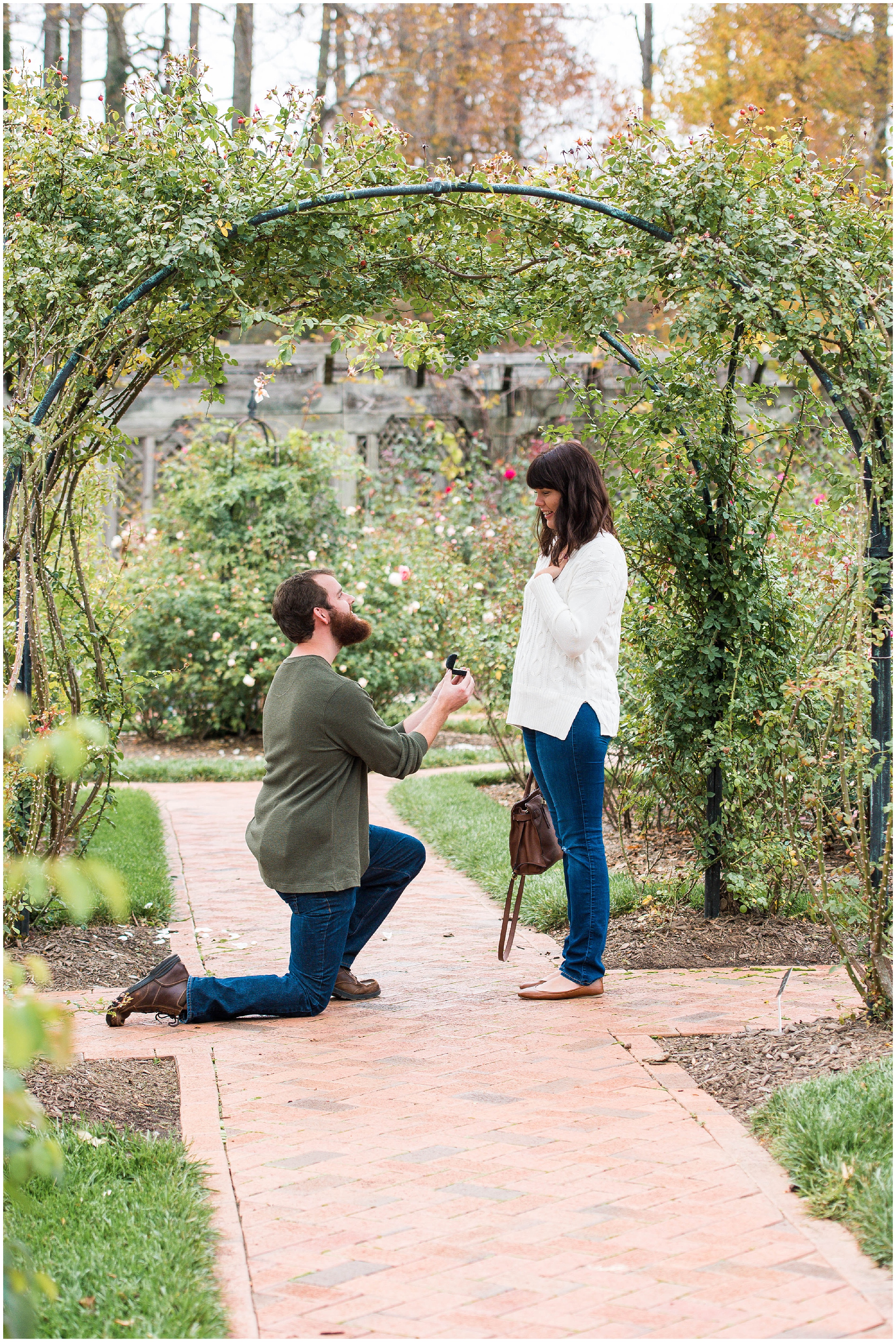 It is so thoughtful how much planning Jonny put into his proposal. We walked through Biltmore on google maps and picked the perfect spot for him to propose, and even made two plans for the rain. I think we spent about an hour going over everything at Starbucks. Thankfully it was a gorgeous overcast fall day, so when I showed up, and the beautiful flower backgroud that Jonny had picked was gone (!!!!) and replaced with orange cones and freshly planted tulips (read: dirt) I quickly texted him that the mums were out, and picked a new spot in the Rose garden!