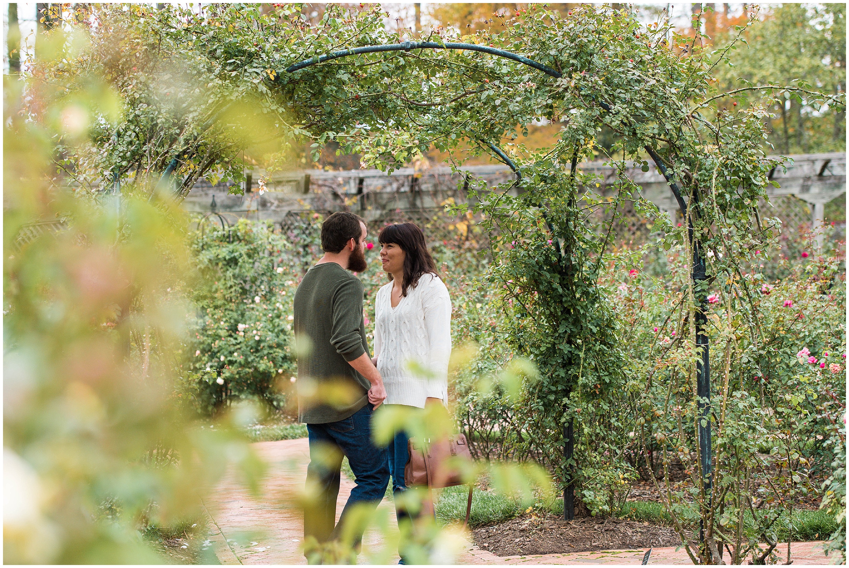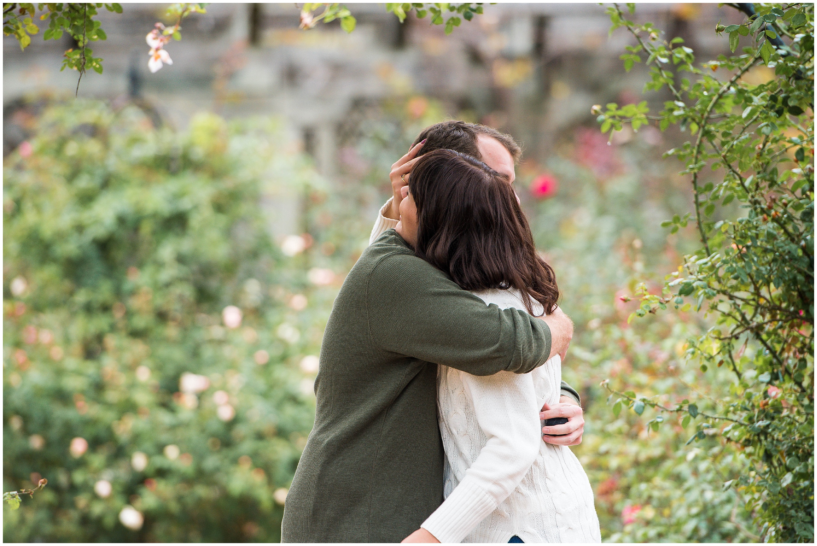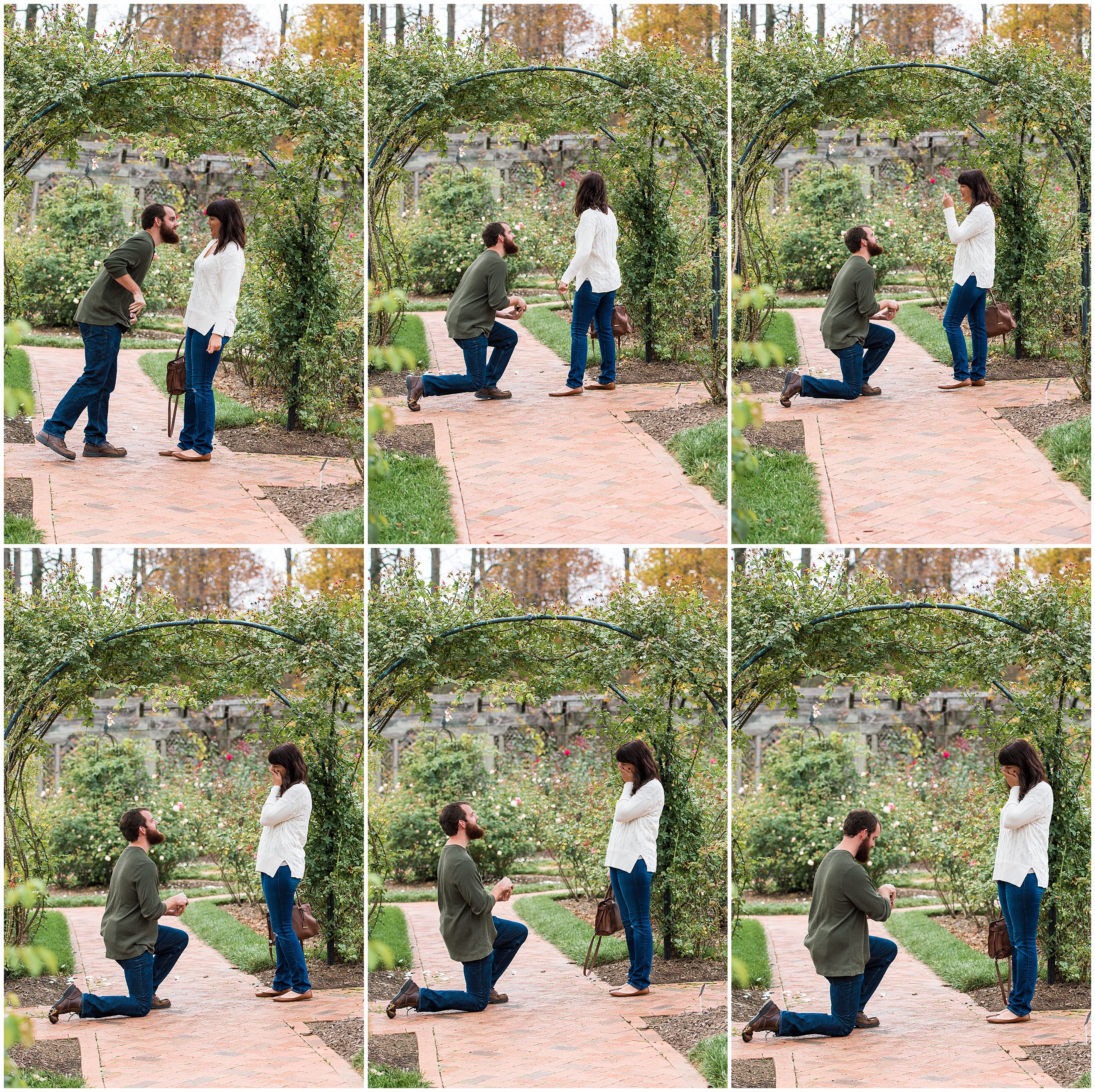 It is so thoughtful how much planning Jonny put into his proposal. We walked through Biltmore on google maps and picked the perfect spot for him to propose, and even made two plans for the rain. I think we spent about an hour going over everything at Starbucks. Thankfully it was a gorgeous overcast fall day, so when I showed up, and the beautiful flower backgroud that Jonny had picked was gone (!!!!) and replaced with orange cones and freshly planted tulips (read: dirt) I quickly texted him that the mums were out, and picked a new spot in the Rose garden!