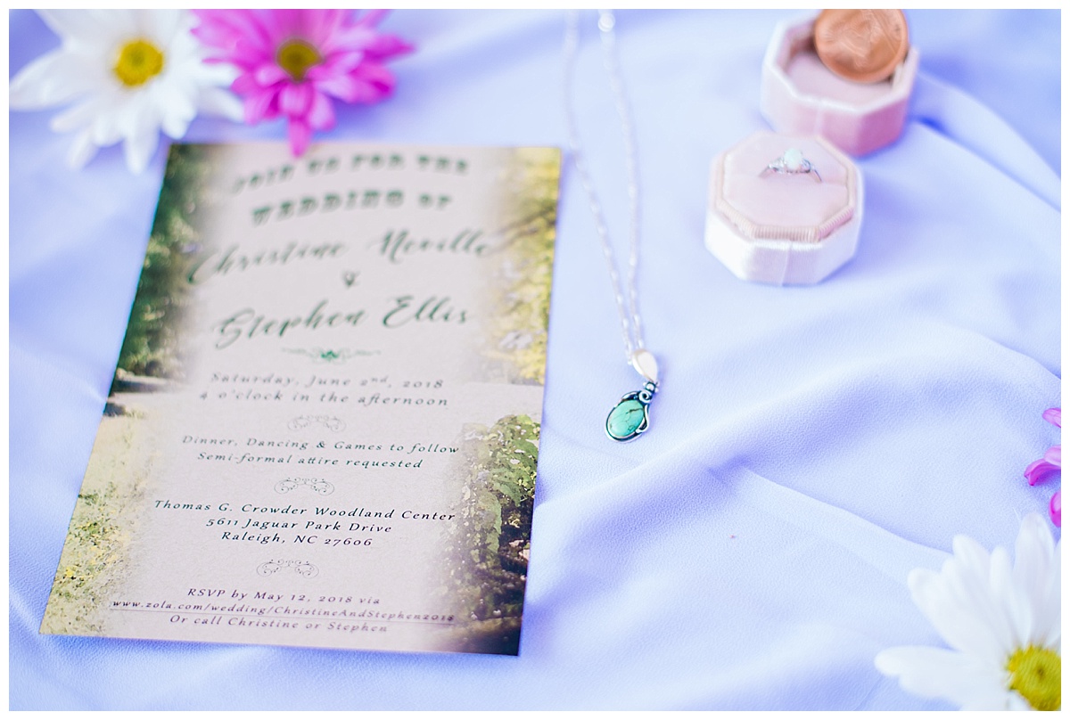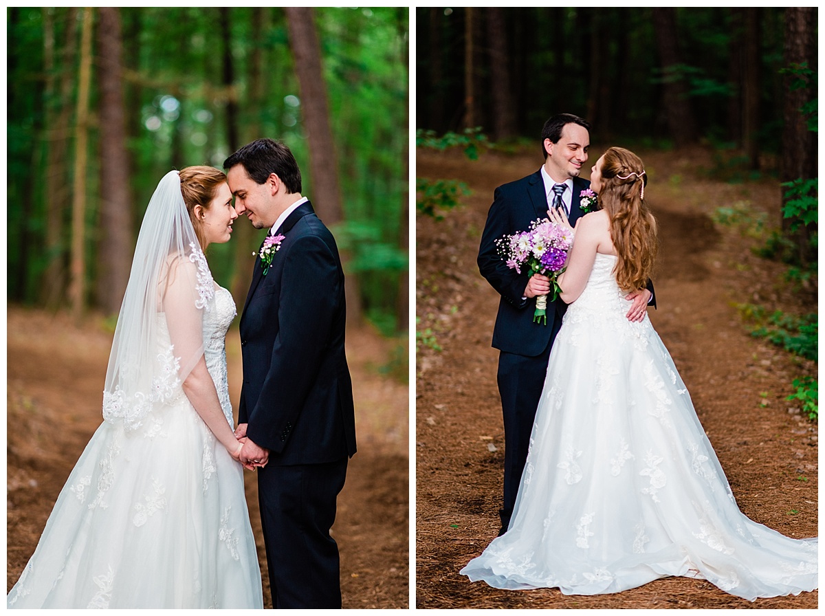 These two just make my heart so happy. I walked away from their engagement session, so excited for their wedding. From matching tones of sarcasm to being complete nerds, I could’ve hung out with them all night. Their wedding day was exactly the same, and was a nice change of pace. They chose to have an intimate wedding at the Thomas Crowder Woodland Center, located near Lake Johnson.