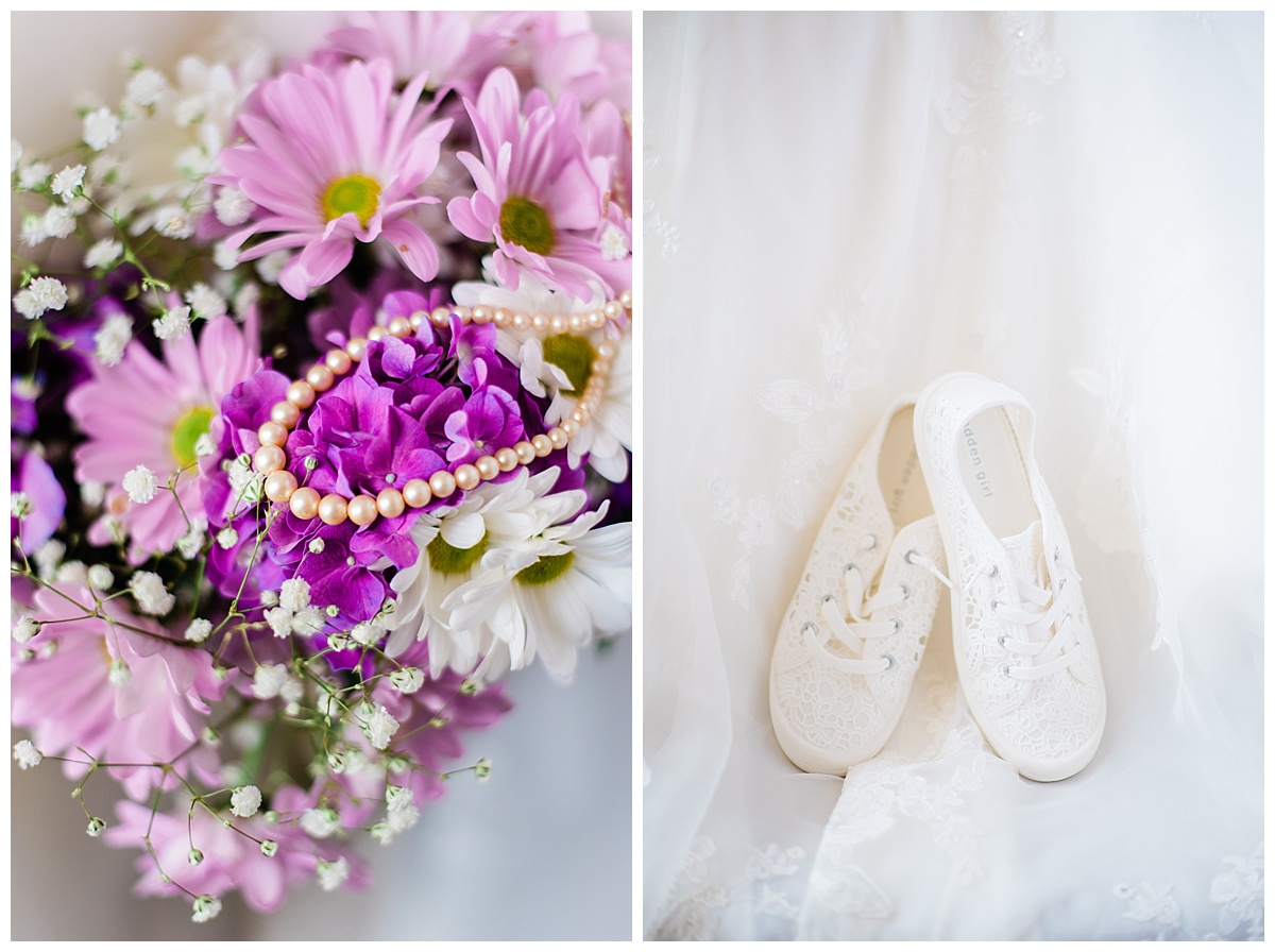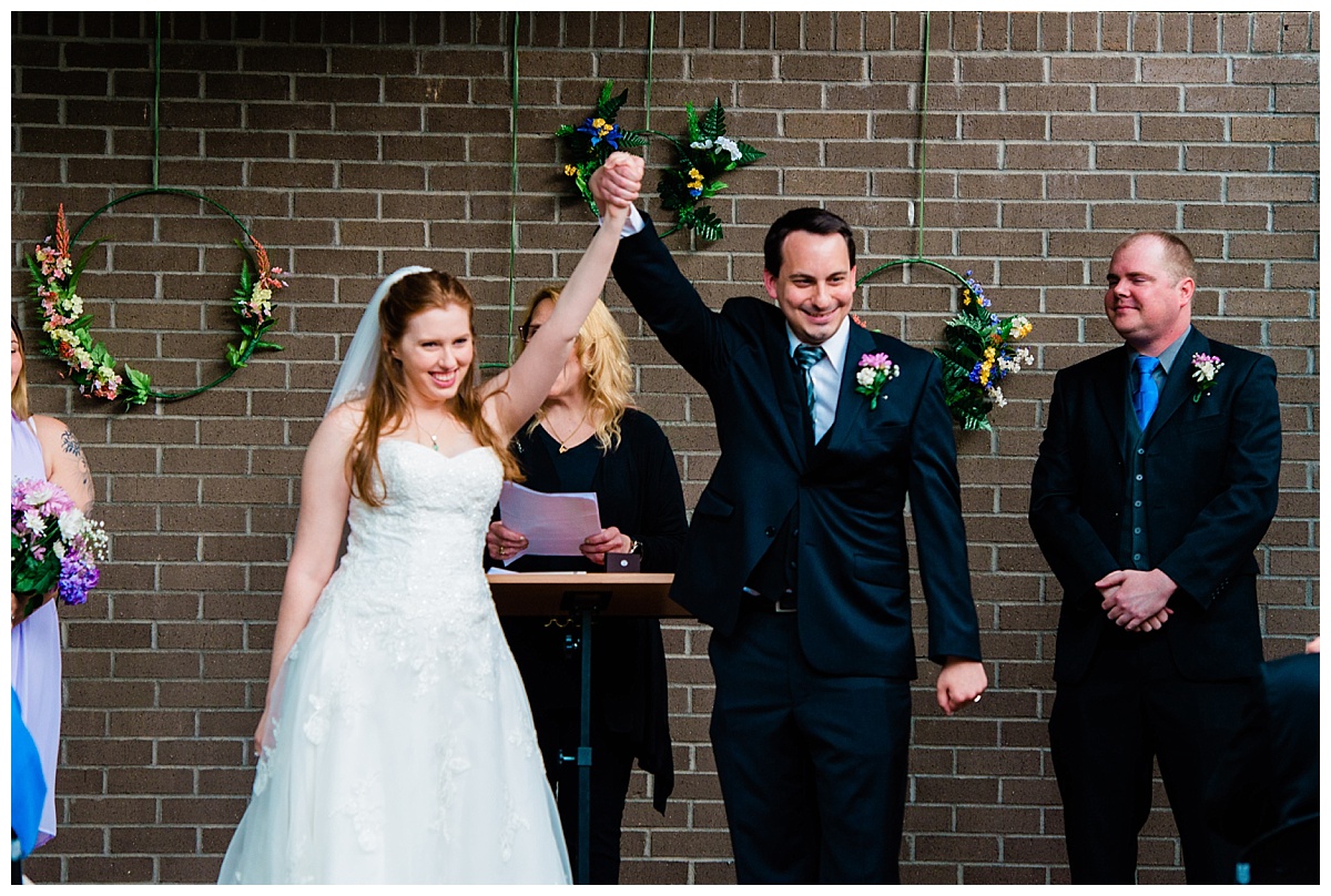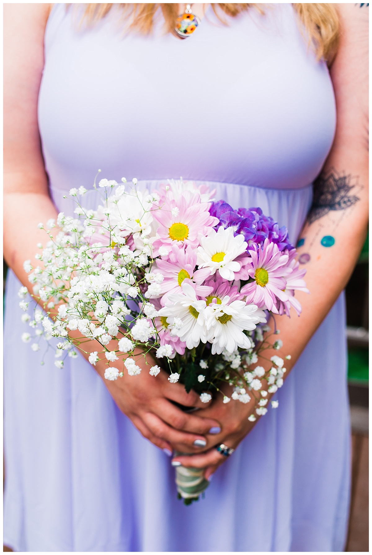 Christine got ready in their apartment with her best friend of 15+ years Tanisha, and her mom. They hand made the bouquets, floral circles and centerpieces themselves and featured Christine’s favorite flower, daisies! Much of their wedding was DIY, including the invitations that Stephen designed, and they hand painted their favors, terra-cotta planters with seeds! The cake was made by Christine’s mother & aunt, and Stephen made the cake topper.