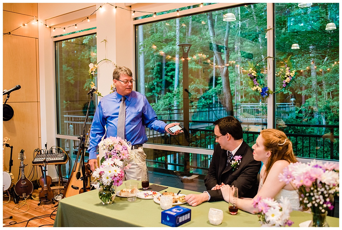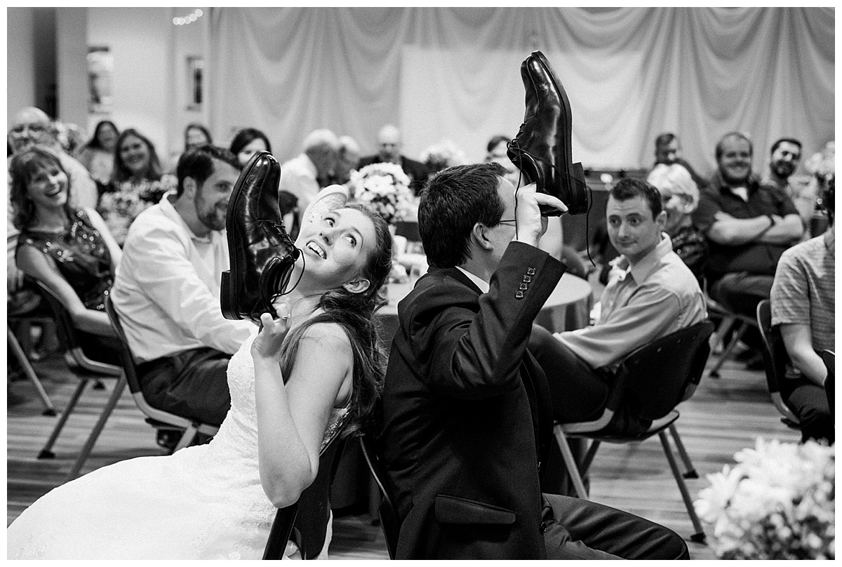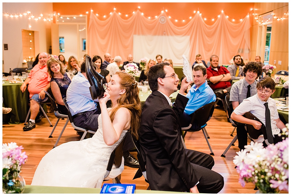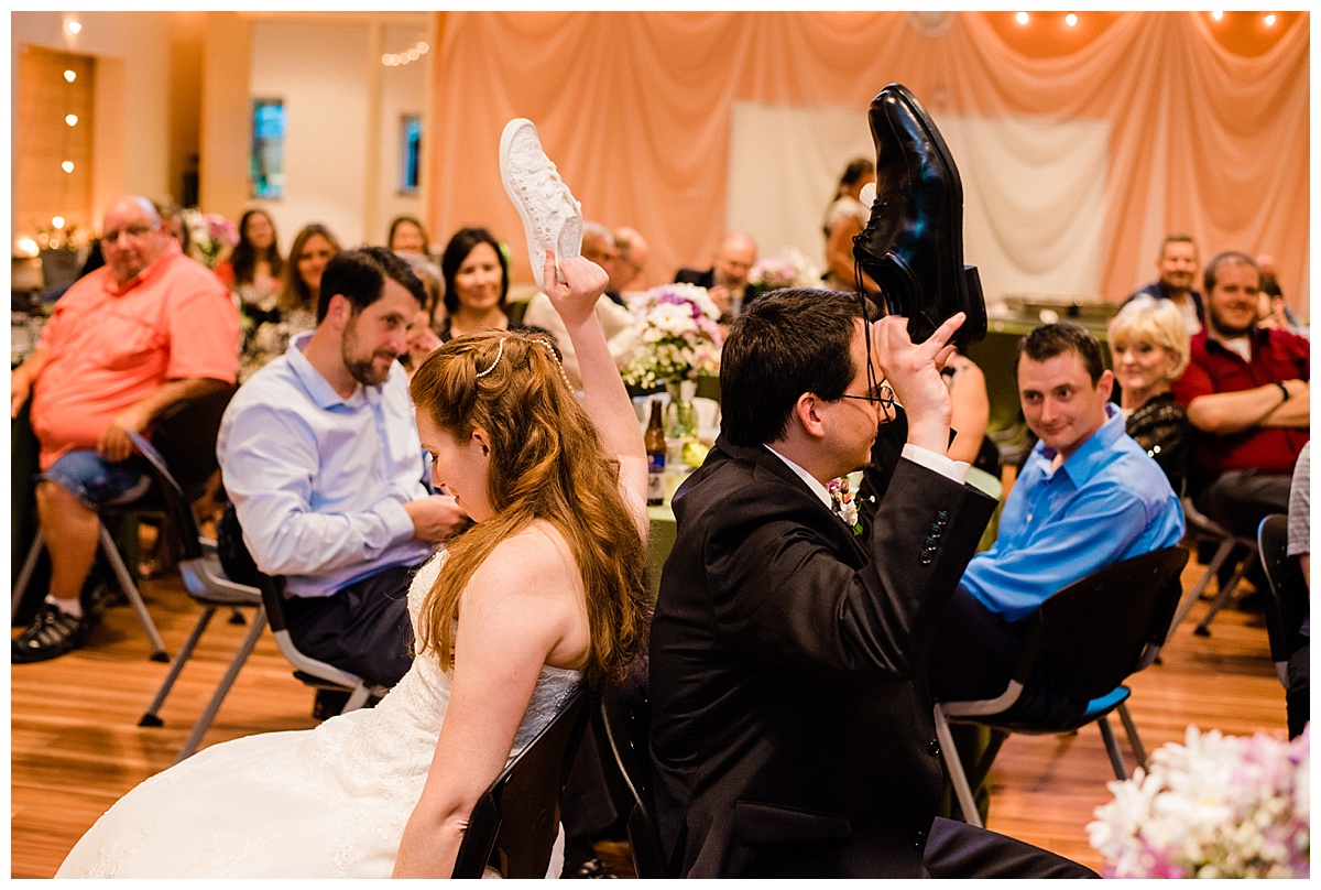 As dark clouds rolled over Raleigh and thunder was heard, their ceremony stayed dry, as did the next couple of hours! When it did rain, we were left with a double rainbow, which was pretty cool if I say so myself! The mood was perfectly set with their Irish Folk Band, along with games and lots of conversation. Christine & Stephen played the shoe game, which got tons of laughs, as well as had games set out at the tables.