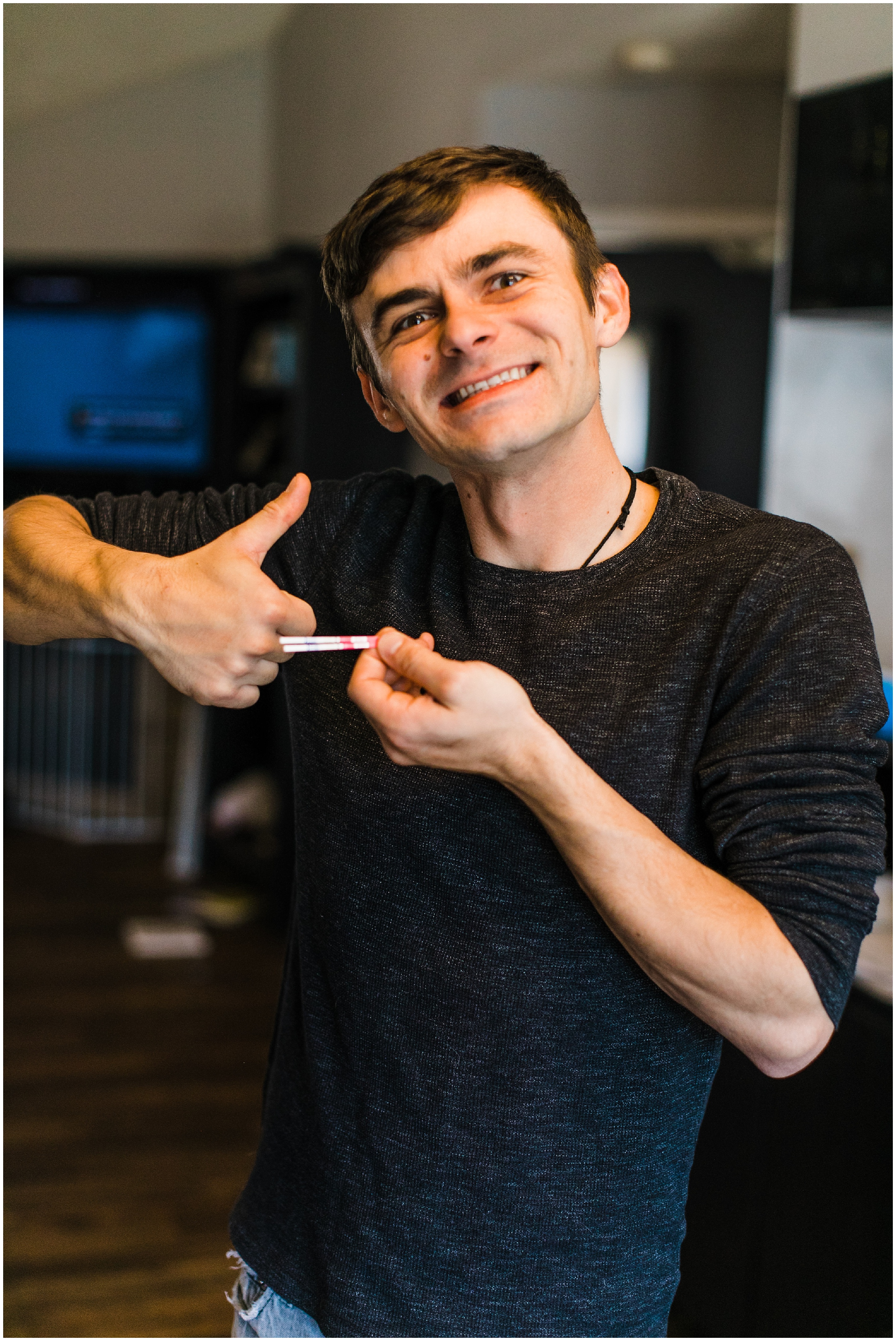 Last time around, Andrey hid my pregnancy tests from me so I would have to take it when he was home. I found out first thing in the morning and the first person I saw that day was Danielle, as she was second shooting a wedding with me! I wanted to capture his reaction on camera, so I told Danielle and she immediately agreed to come to our house the next weekend so I could tell Andrey in the most cheesy way!