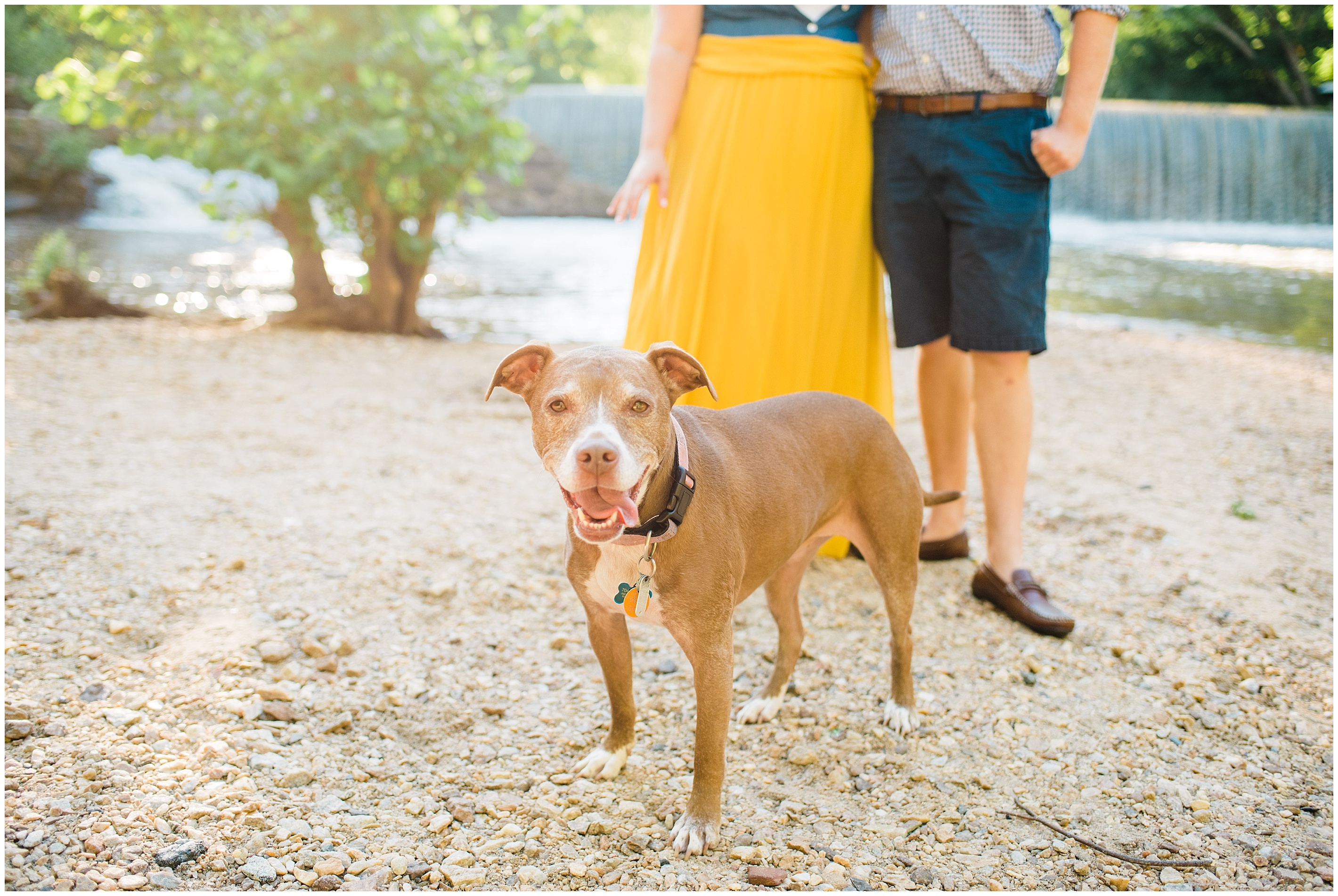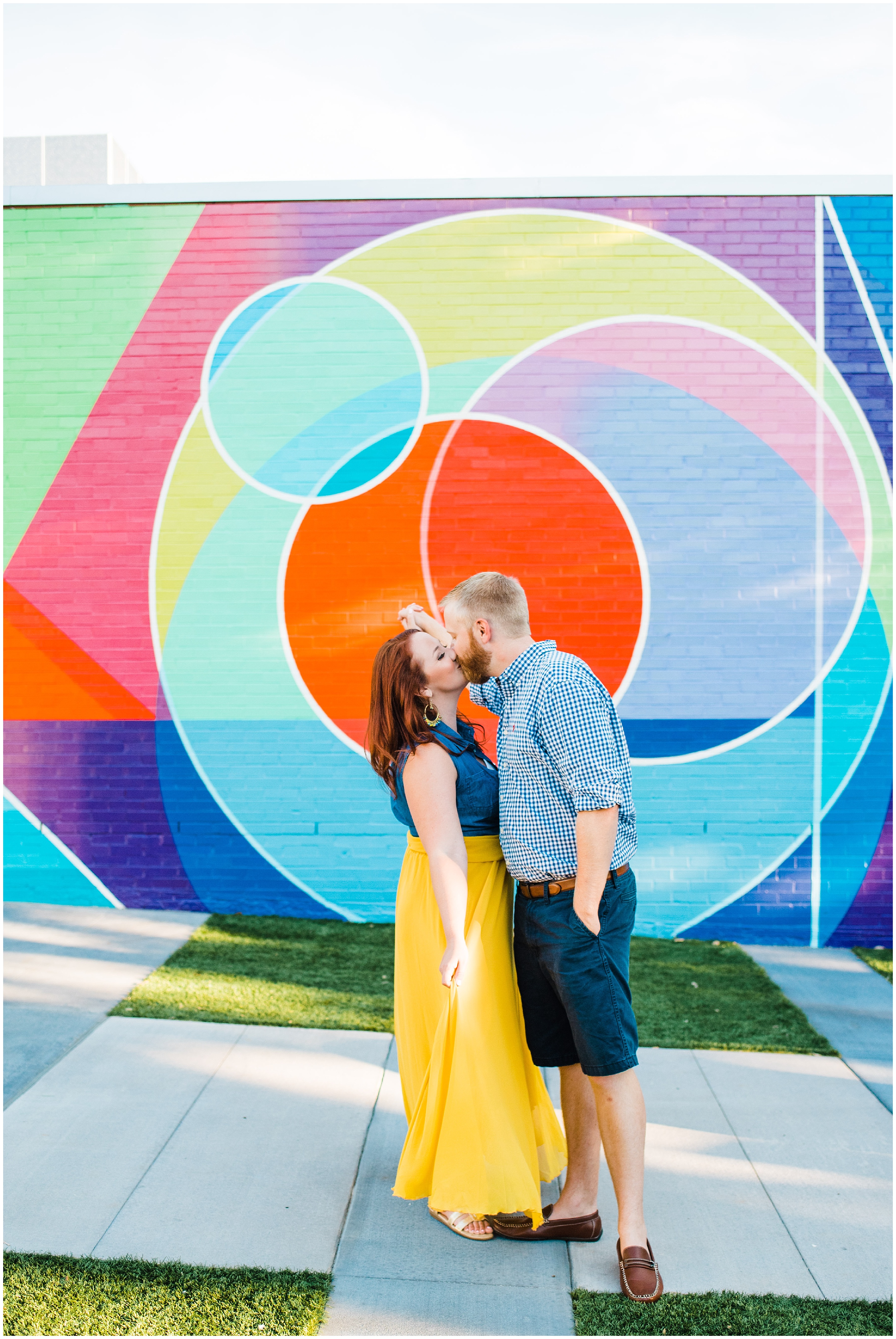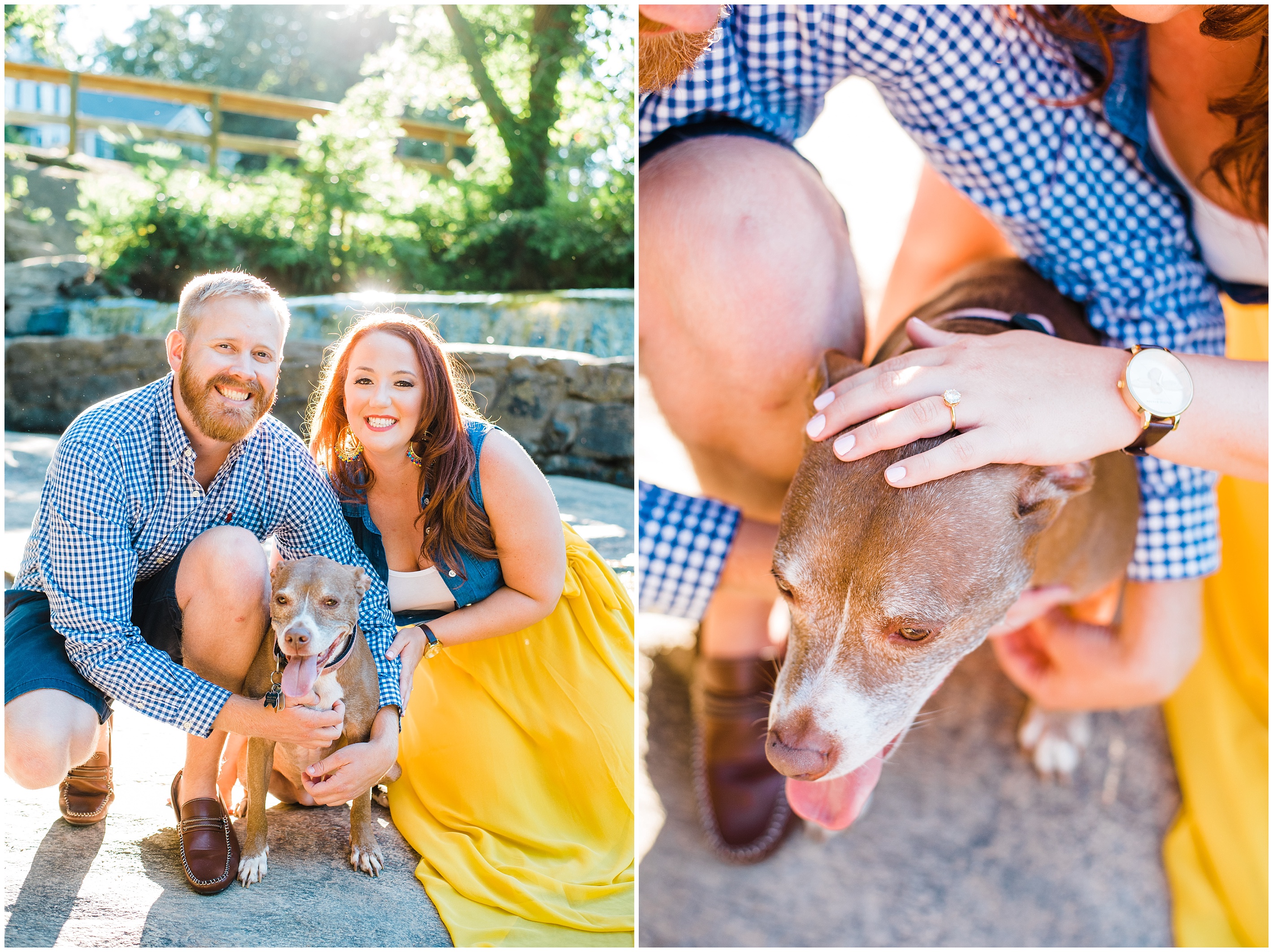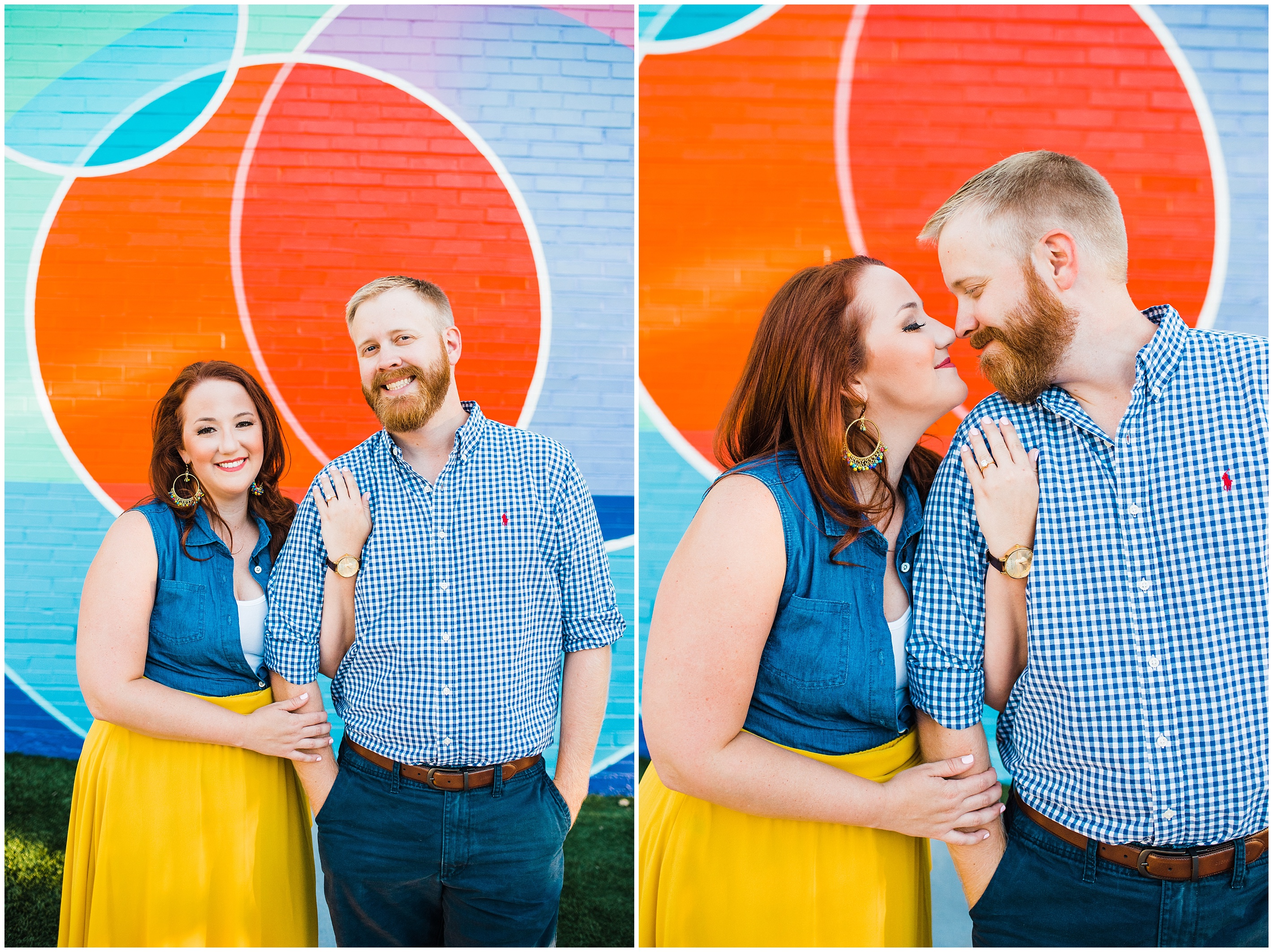 After a couple of snafu’s, we started their session at the spot Matt proposed, Lassiter Mill, with their adorable pup Folger in tow! Folger is, by the way, the most well behaved and chill dog I have ever seen! She was just hanging out with us. We shot a little bit down there, before hopping over to Downtown Raleigh, where we went to the Marbles Museum to shoot in front of their incredibly bright and colorful mural (two things that I love!) This was all Caroline’s idea, so I love how their outfit choices popped off even more with the bright wall.