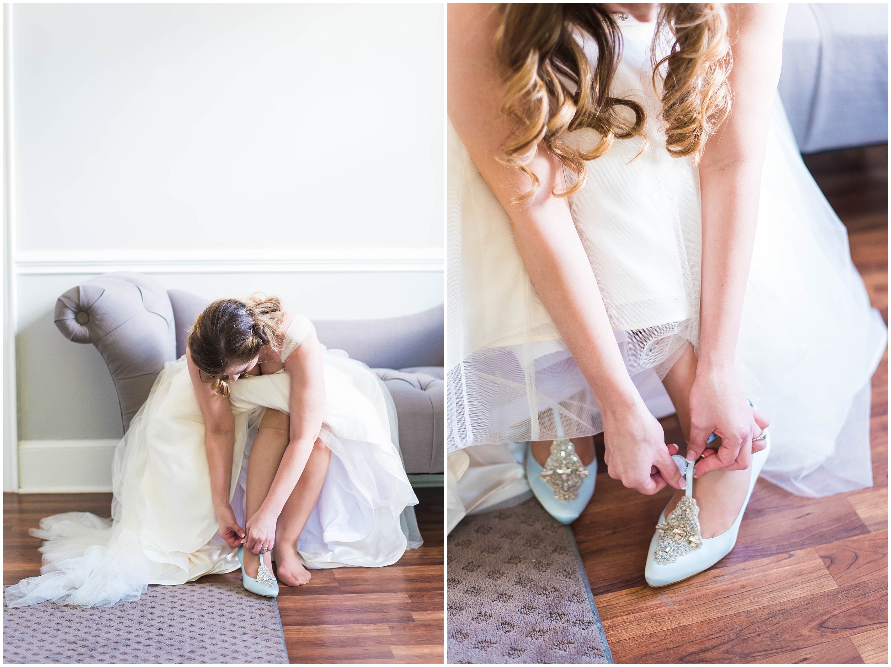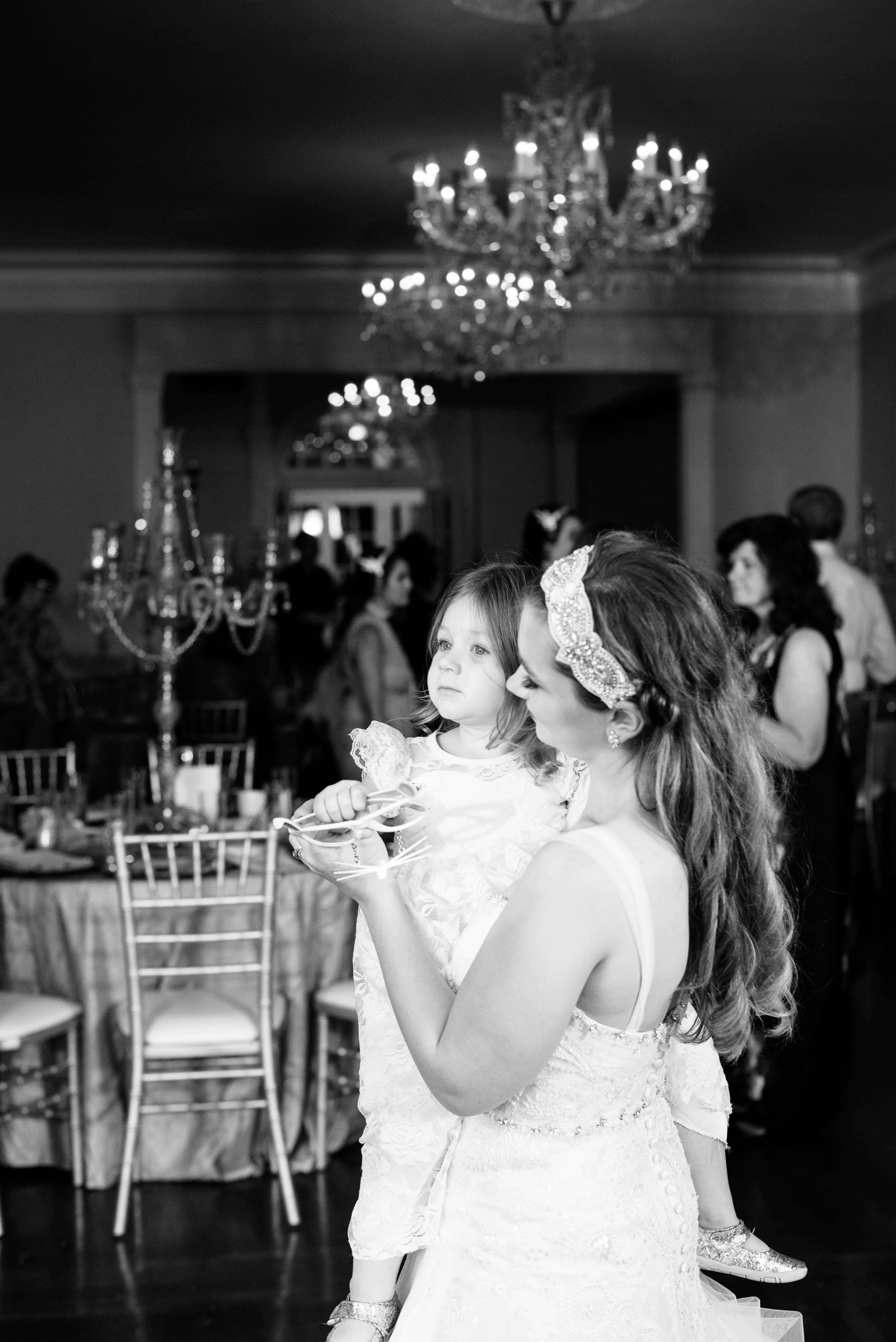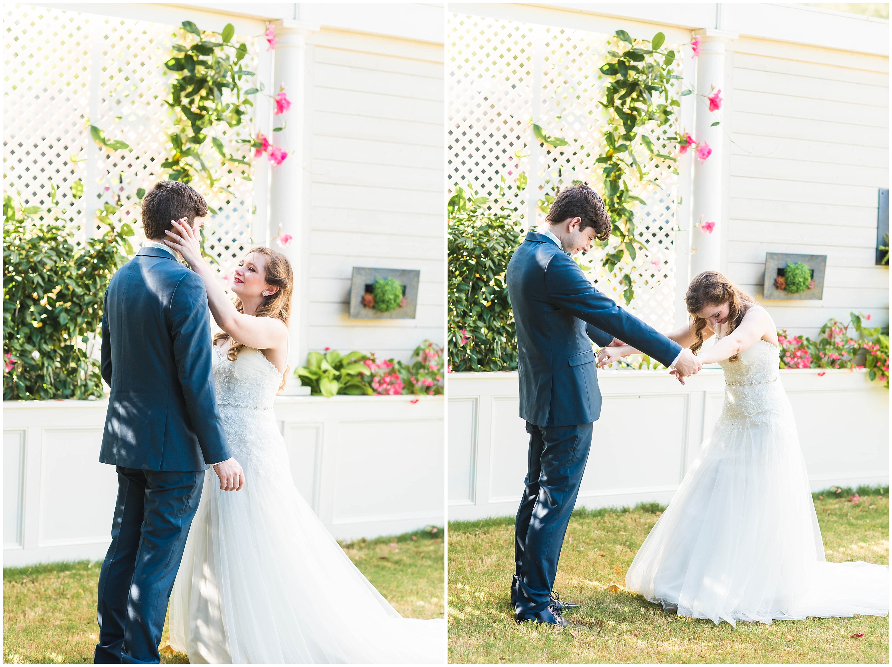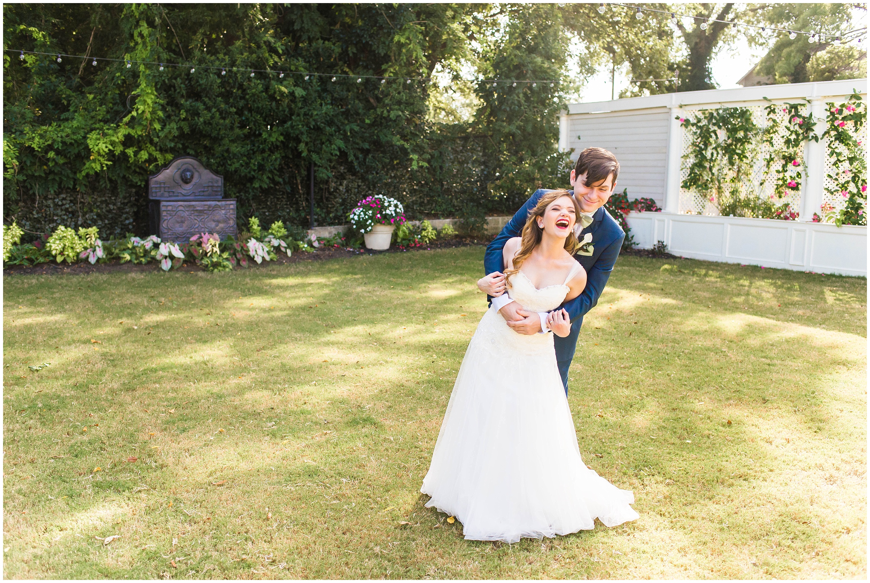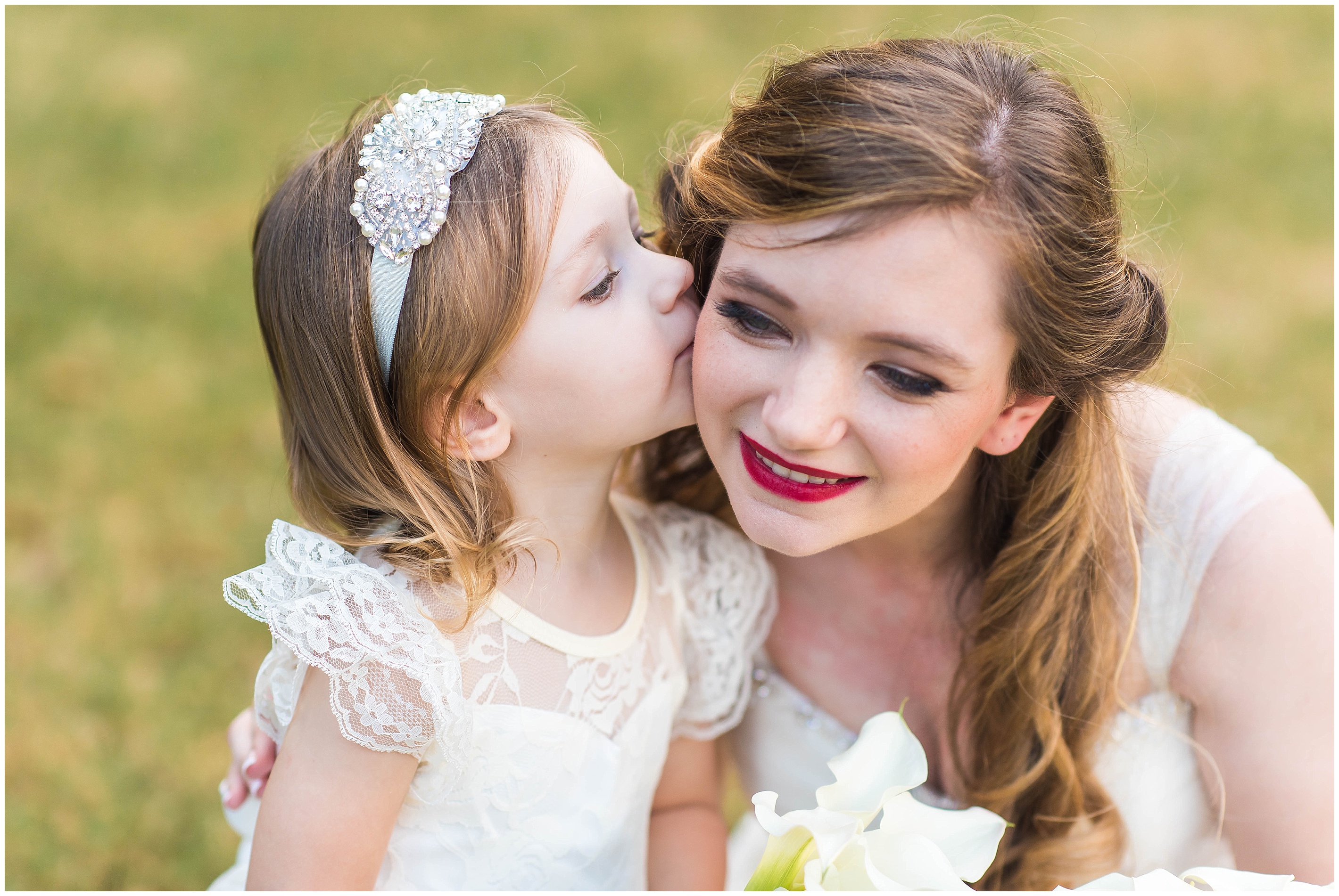 Before Sarah got dressed, Sophie, Sarah’s niece & flower girl, got to put on Sarah’s princess dress, which she was so excited to do! Sophie was one of the most behaved & cooperative flower girls, and she is only 2 years old! Sarah and Zach shared a first look on their wedding day, which was oh so special! I was so glad that we were able to do their portraits then because it down-poured immediately following their ceremony! They had a very quick & emotional ceremony, but I loved their processional & recessional songs, which were from Tangled & Harry Potter (two amazing choices!) Their sunny & beautiful outdoor ceremony was so perfect. After completing quick extended family photos we felt raindrops, and immediately dashed inside before the curtain of rain reached us. We did some quick portraits inside before getting Sarah bustled & having them enjoy their cocktail hour with their guests.