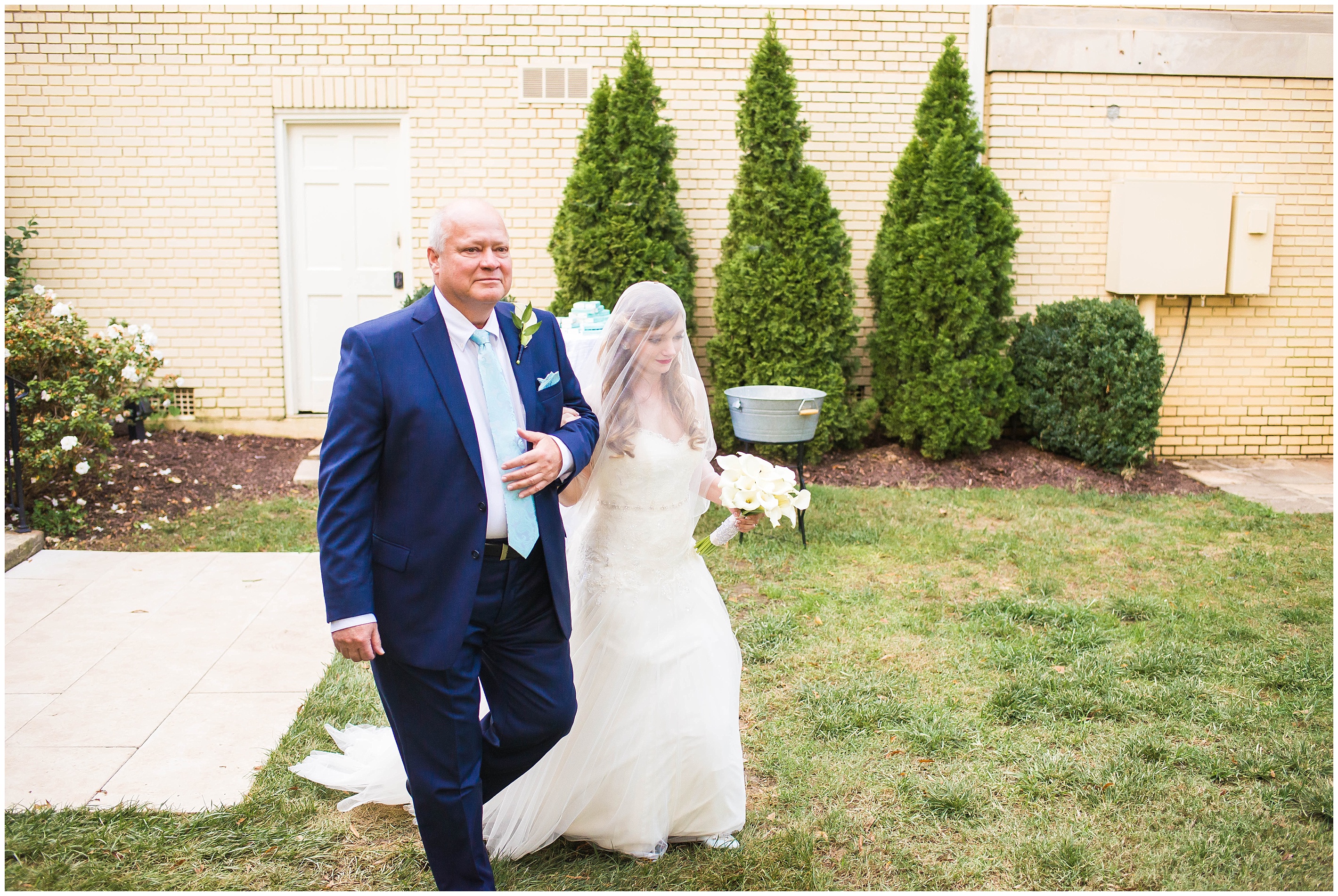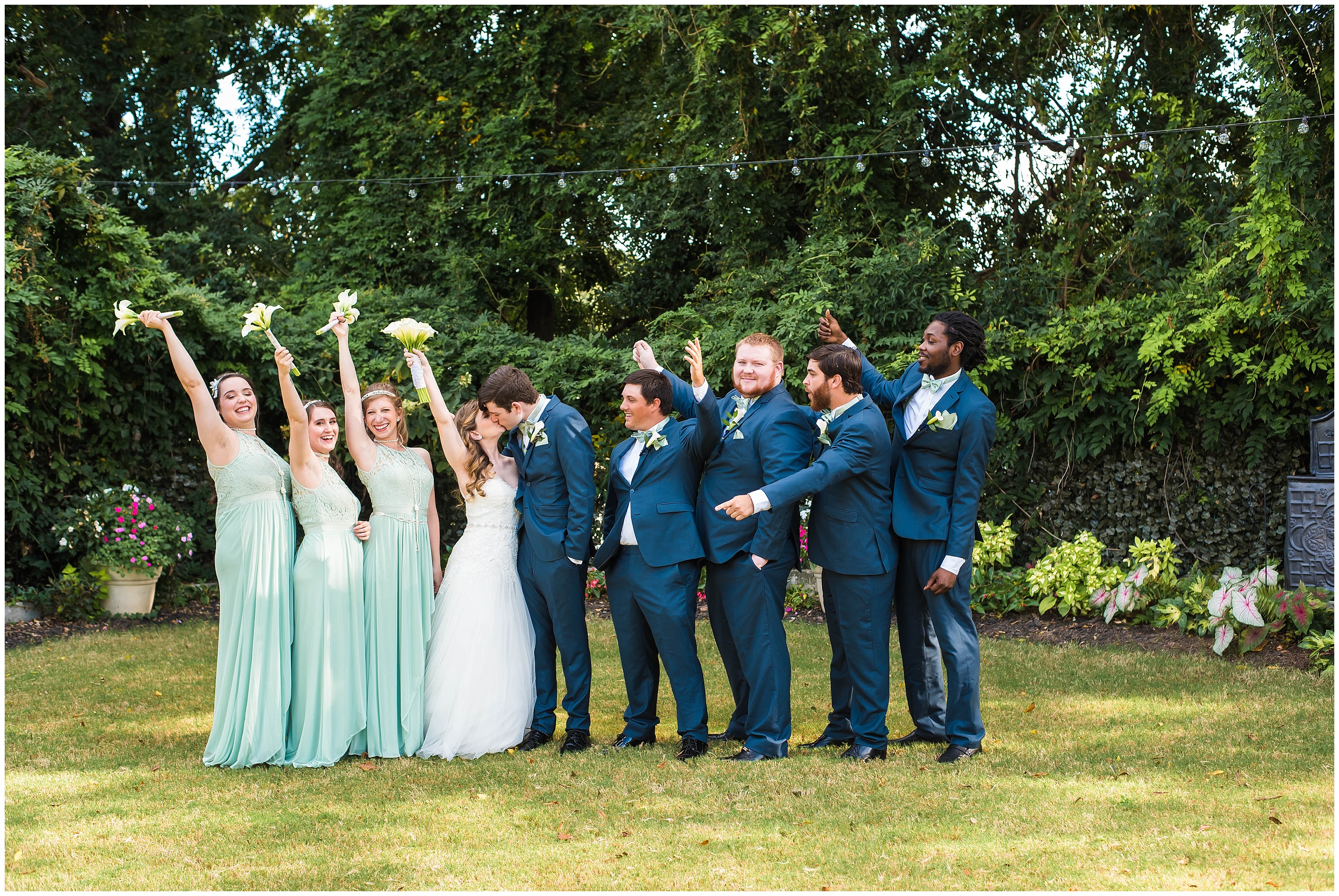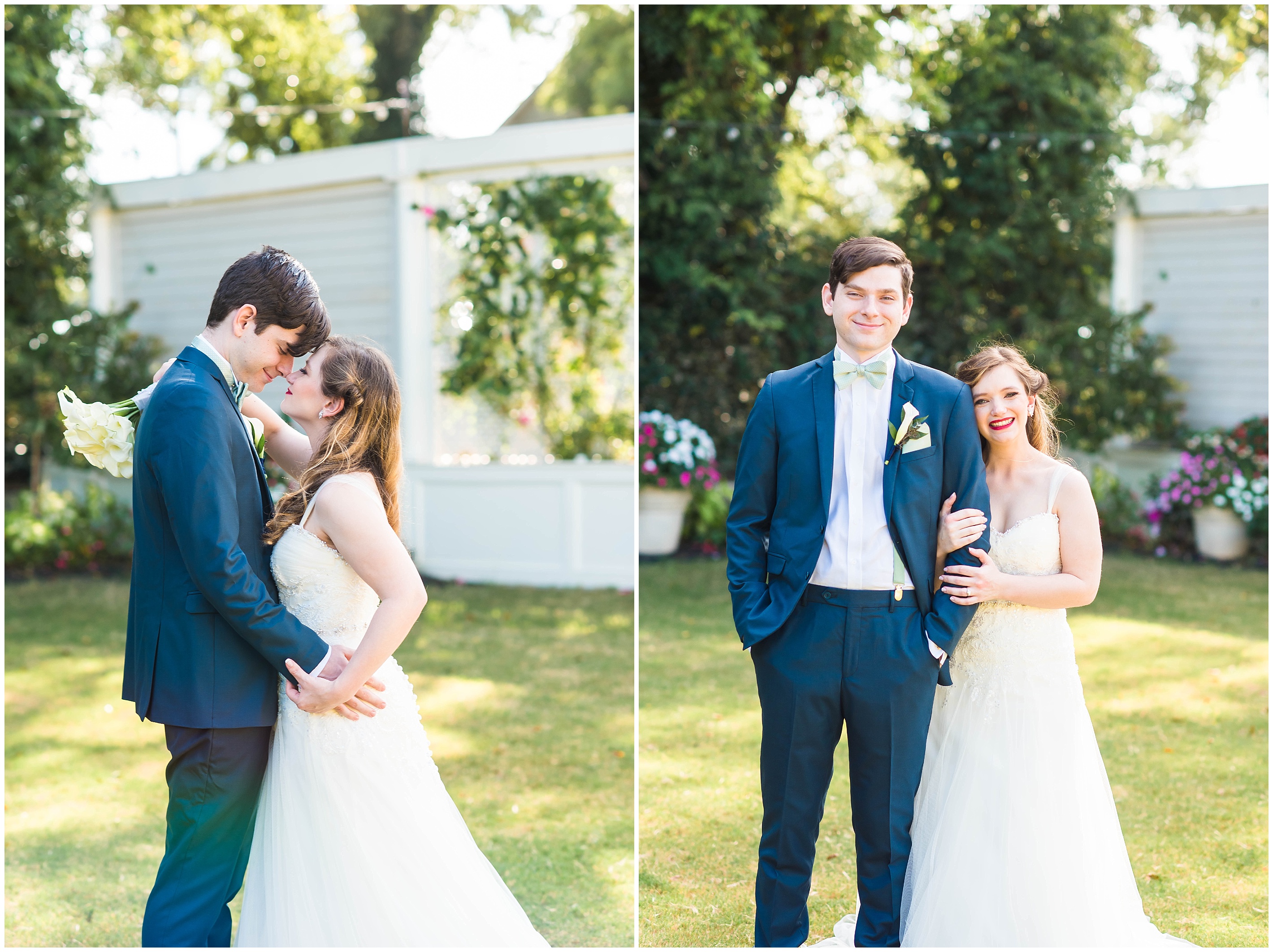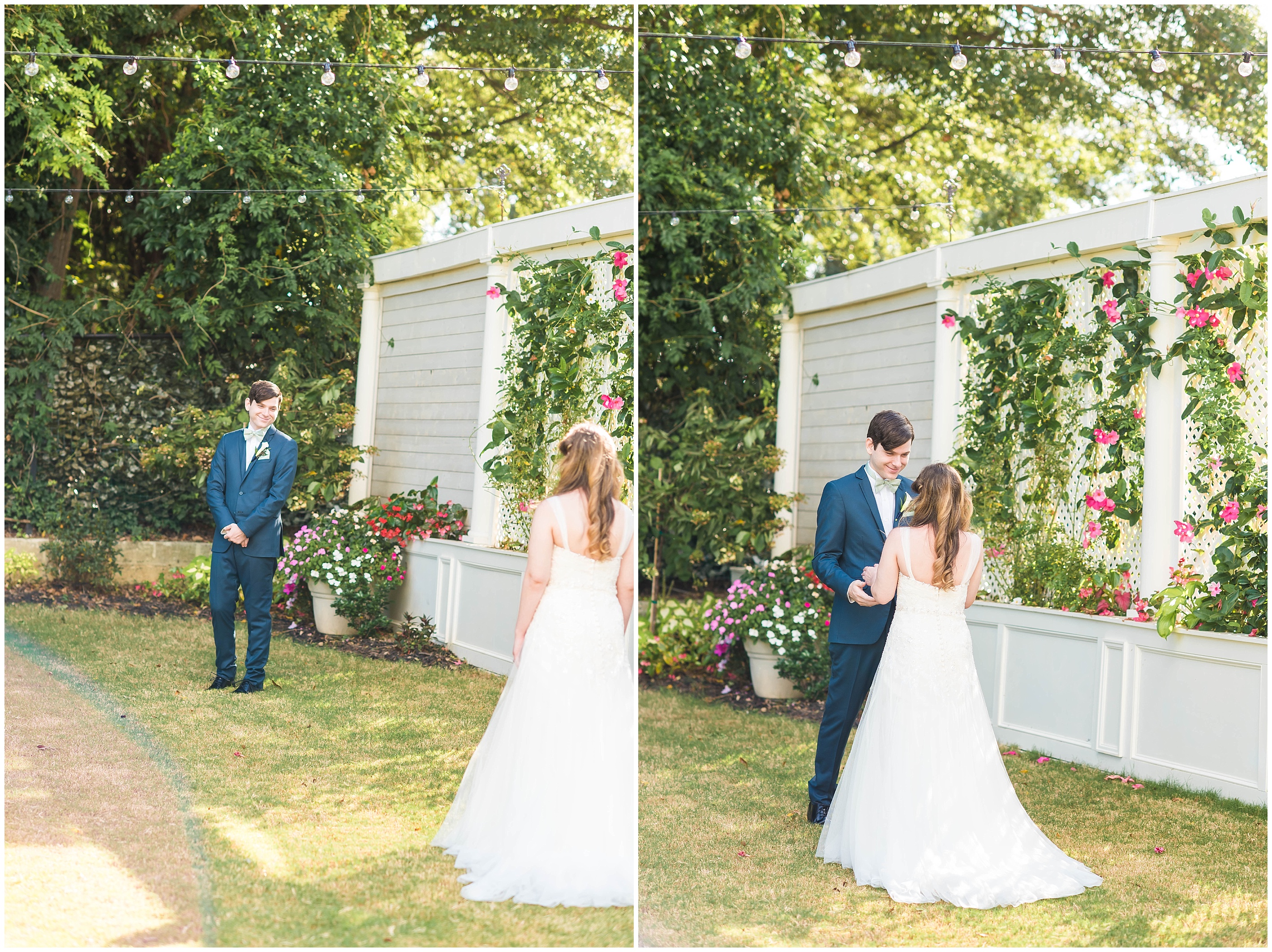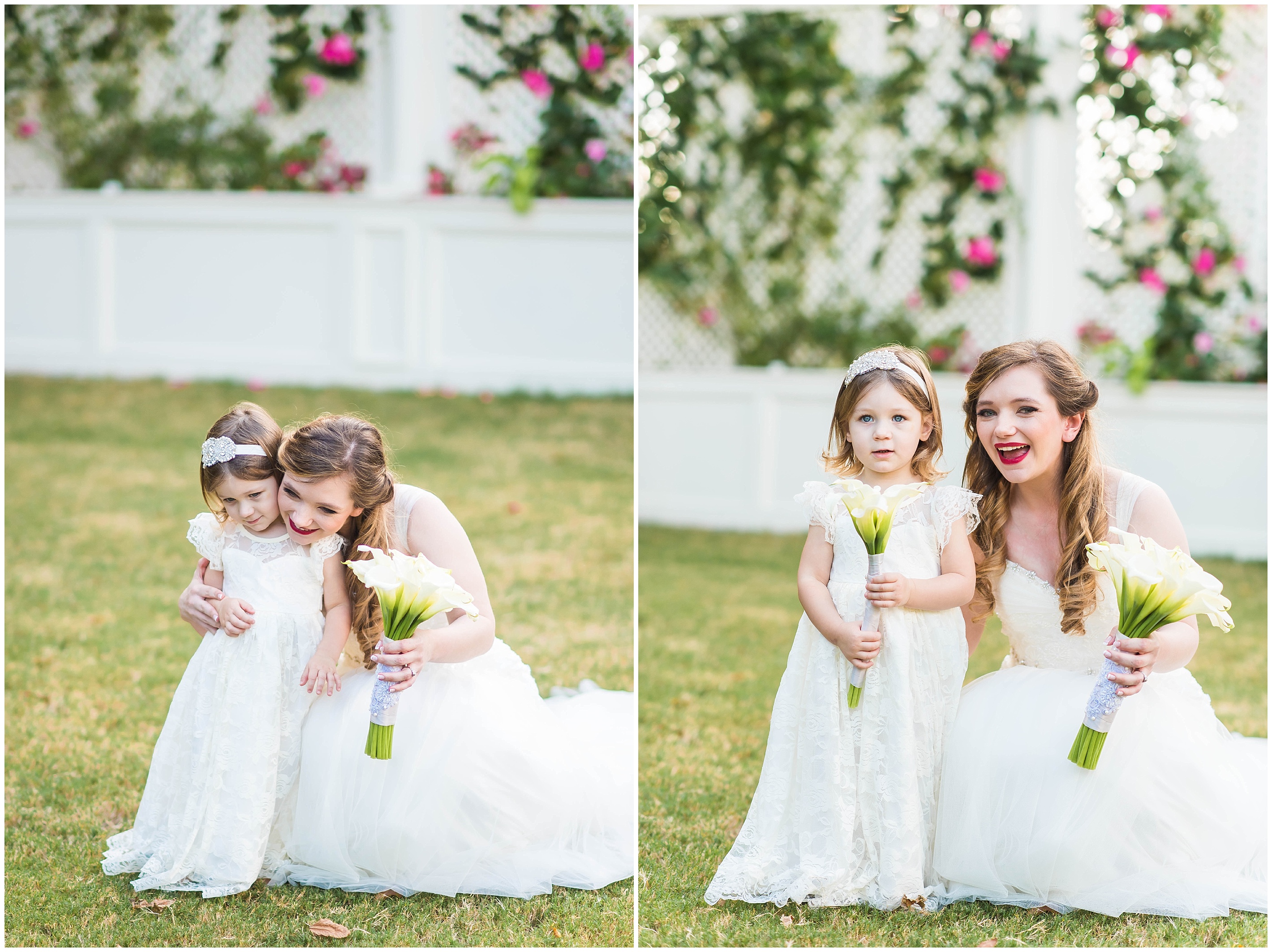Before Sarah got dressed, Sophie, Sarah’s niece & flower girl, got to put on Sarah’s princess dress, which she was so excited to do! Sophie was one of the most behaved & cooperative flower girls, and she is only 2 years old! Sarah and Zach shared a first look on their wedding day, which was oh so special! I was so glad that we were able to do their portraits then because it down-poured immediately following their ceremony! They had a very quick & emotional ceremony, but I loved their processional & recessional songs, which were from Tangled & Harry Potter (two amazing choices!) Their sunny & beautiful outdoor ceremony was so perfect. After completing quick extended family photos we felt raindrops, and immediately dashed inside before the curtain of rain reached us. We did some quick portraits inside before getting Sarah bustled & having them enjoy their cocktail hour with their guests.