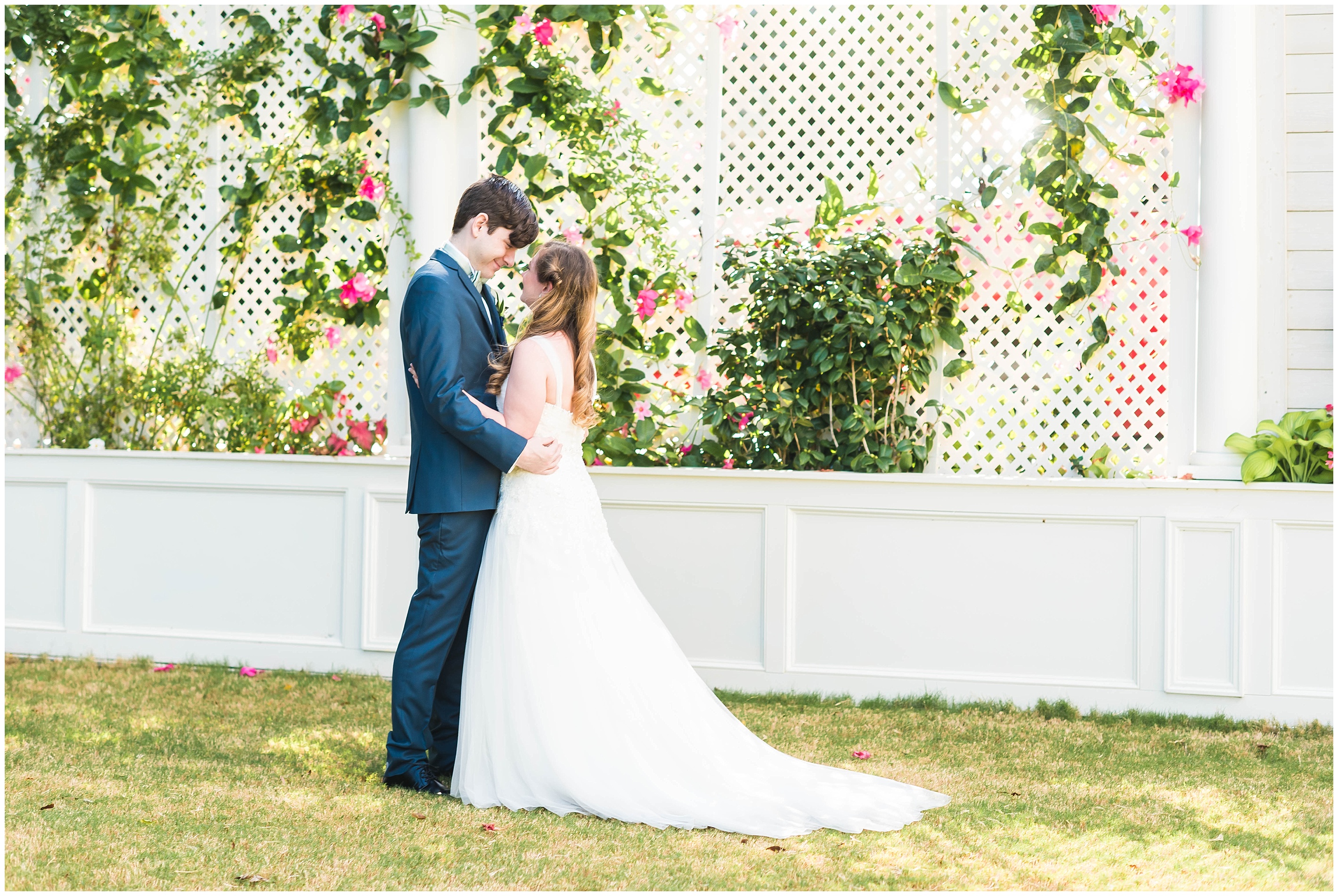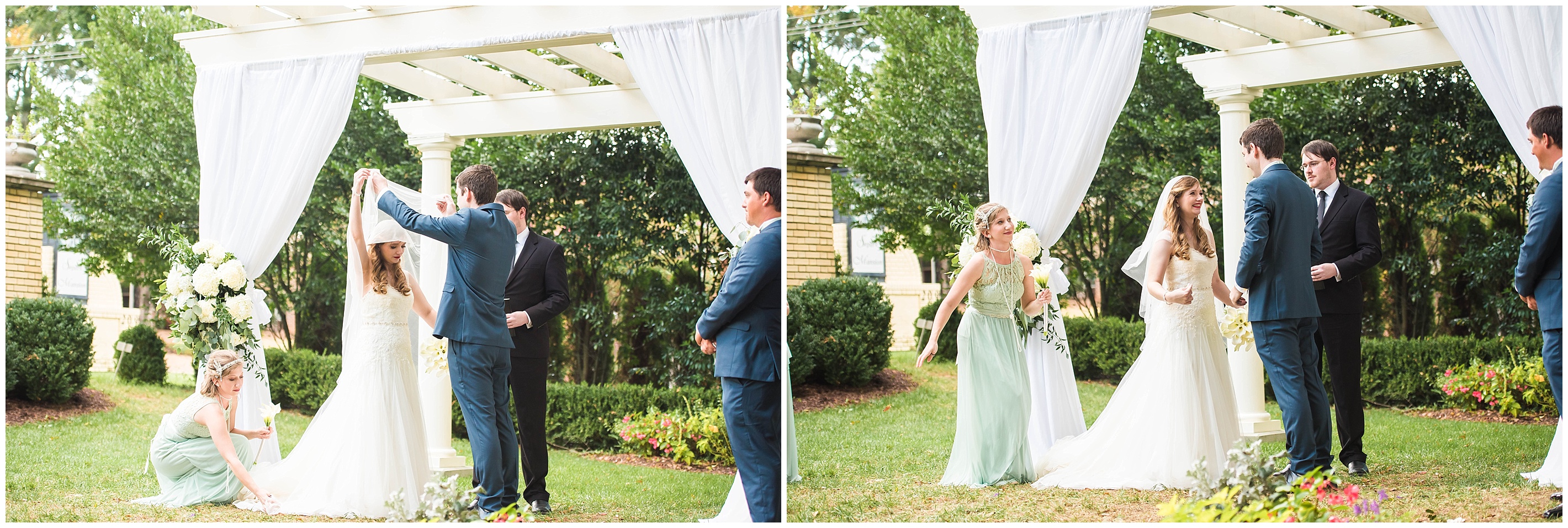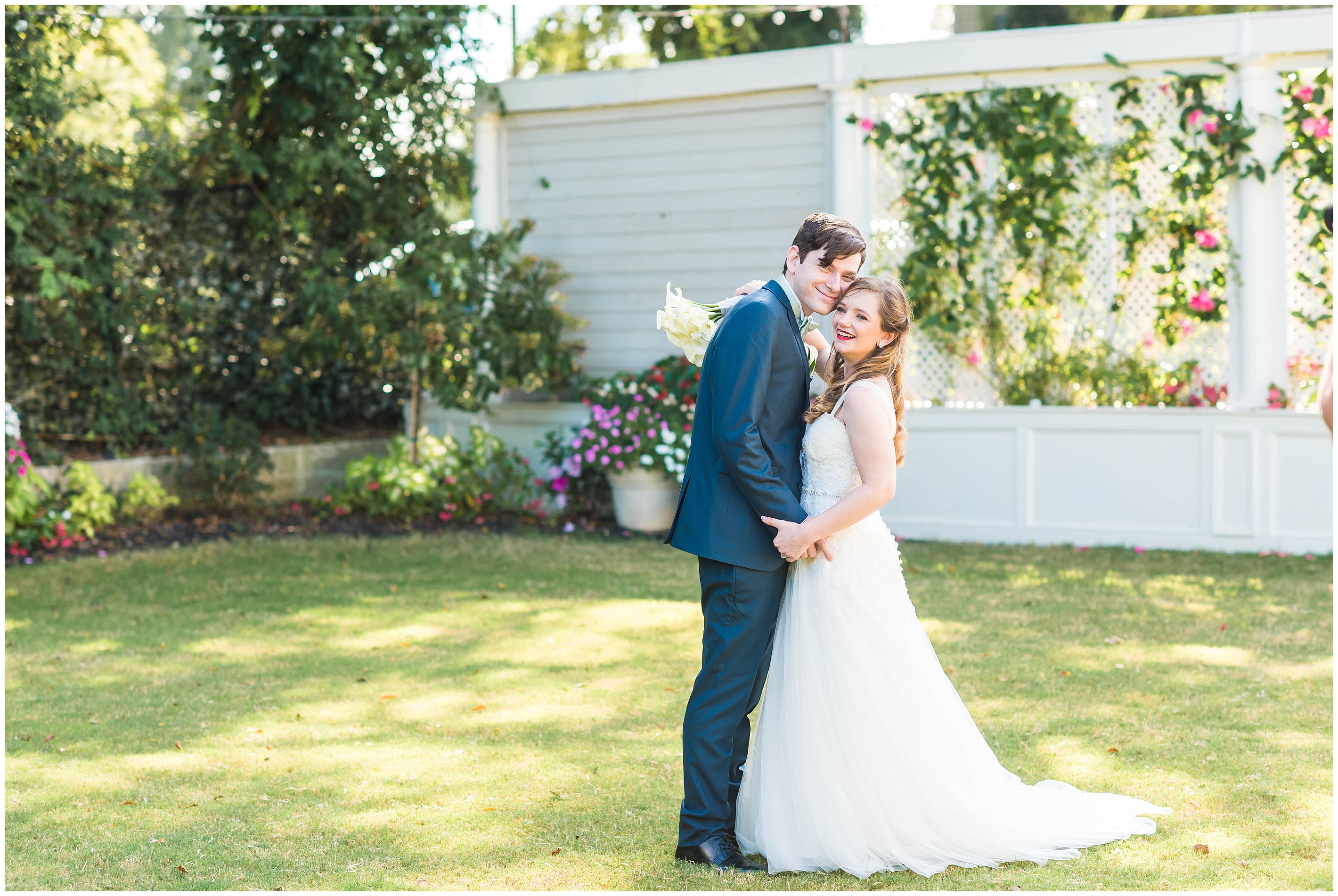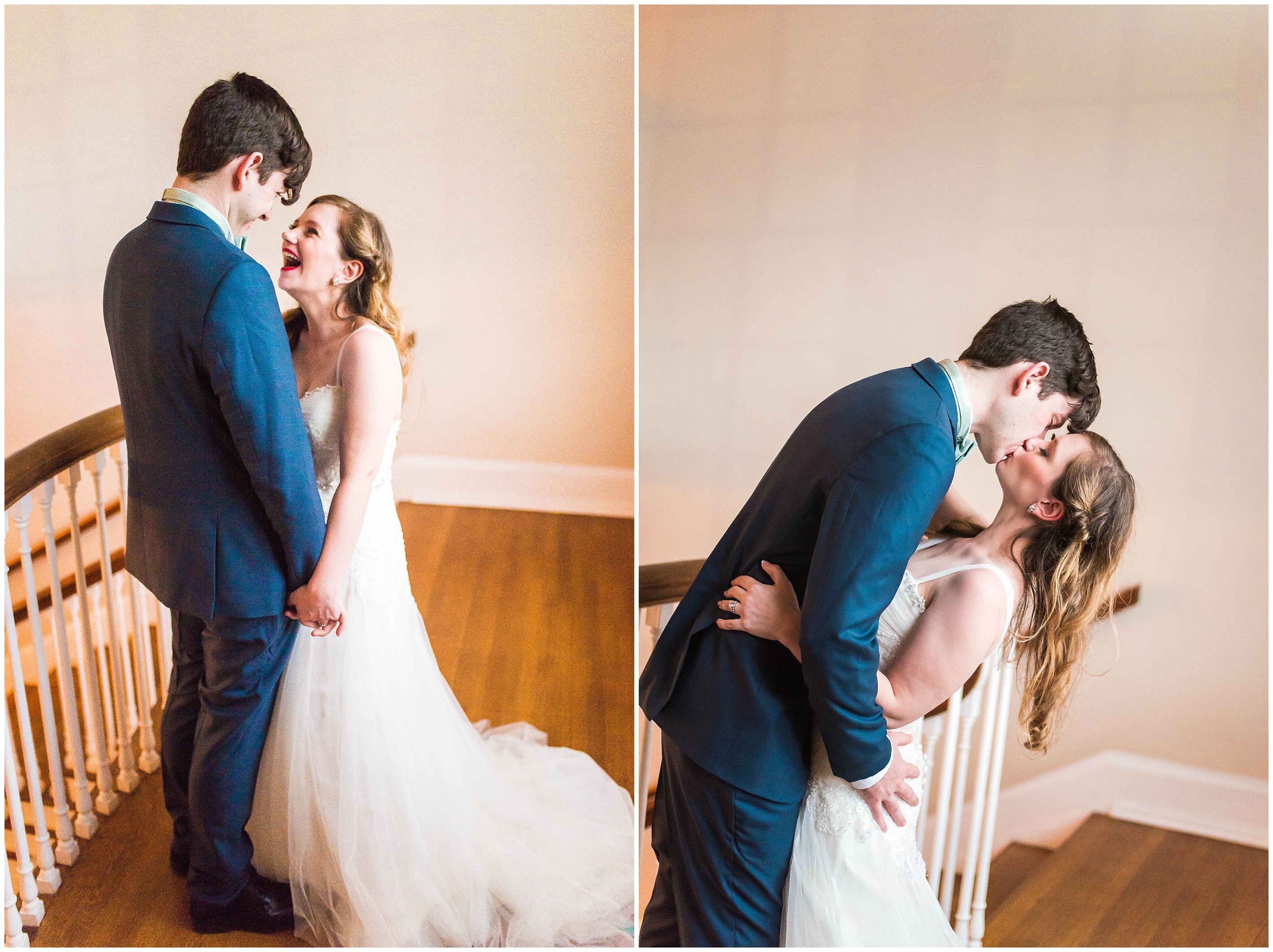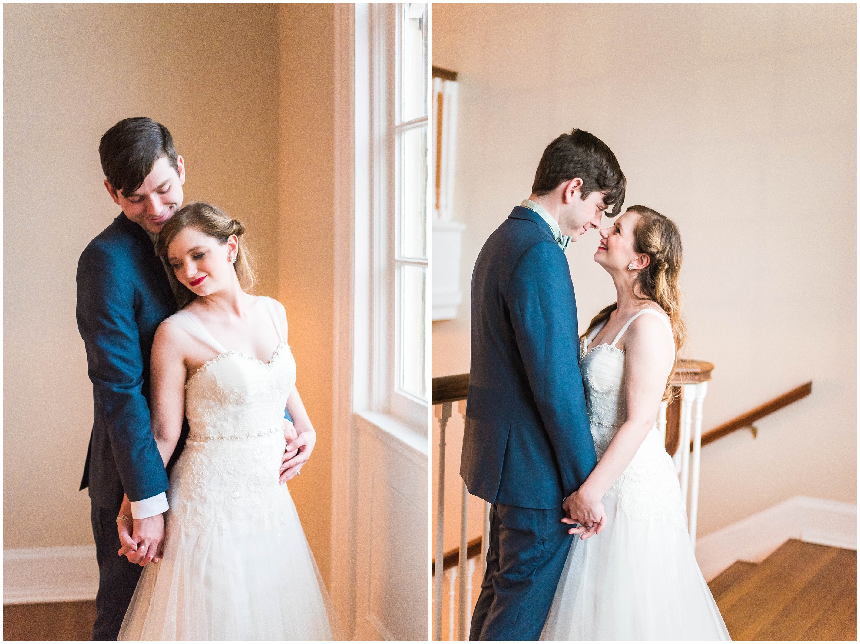 Before Sarah got dressed, Sophie, Sarah’s niece & flower girl, got to put on Sarah’s princess dress, which she was so excited to do! Sophie was one of the most behaved & cooperative flower girls, and she is only 2 years old! Sarah and Zach shared a first look on their wedding day, which was oh so special! I was so glad that we were able to do their portraits then because it down-poured immediately following their ceremony! They had a very quick & emotional ceremony, but I loved their processional & recessional songs, which were from Tangled & Harry Potter (two amazing choices!) Their sunny & beautiful outdoor ceremony was so perfect. After completing quick extended family photos we felt raindrops, and immediately dashed inside before the curtain of rain reached us. We did some quick portraits inside before getting Sarah bustled & having them enjoy their cocktail hour with their guests.