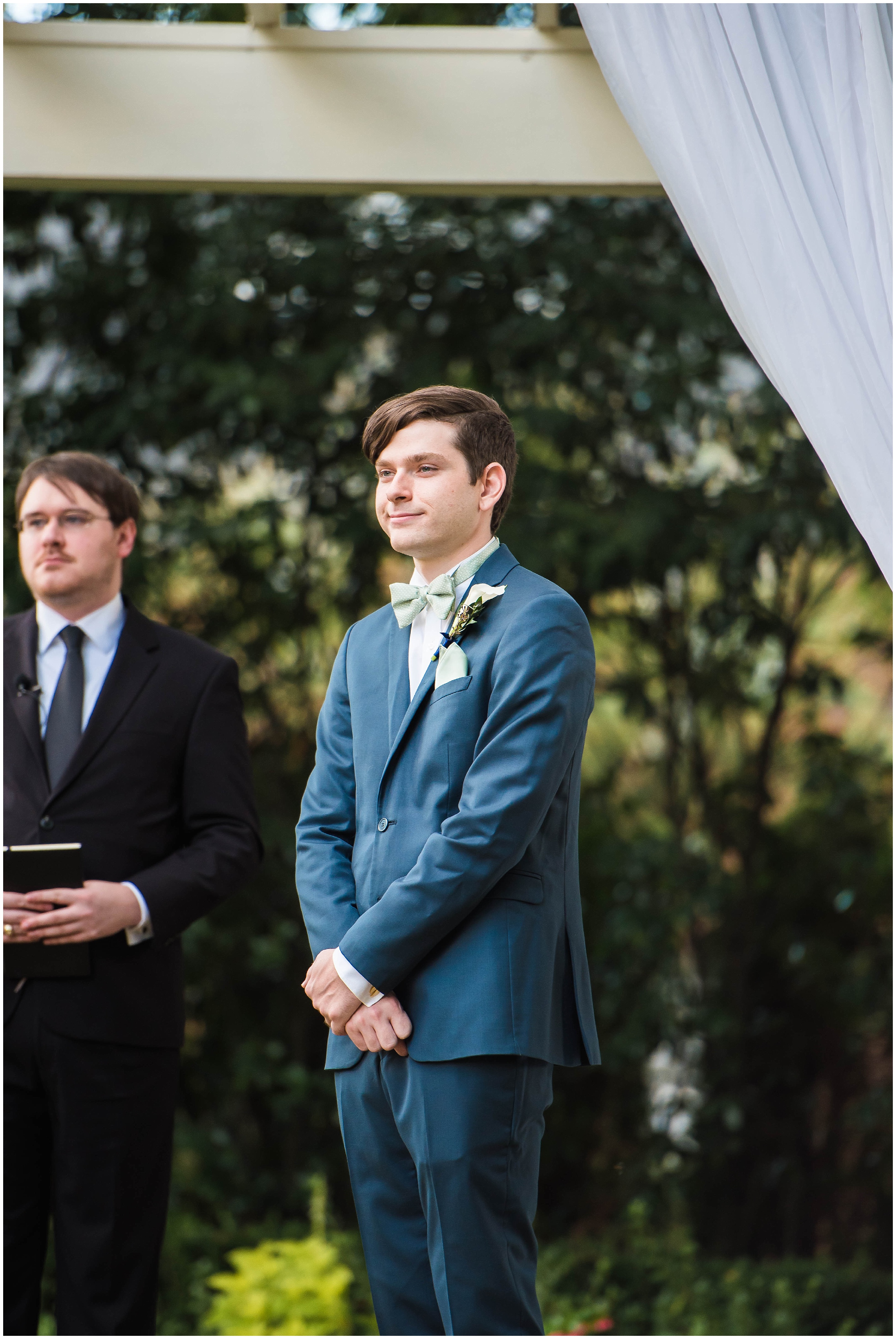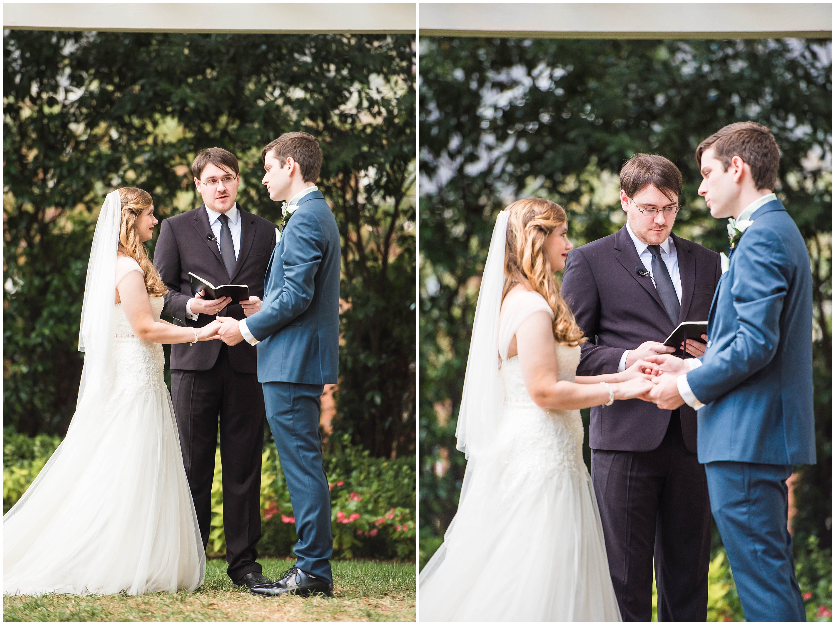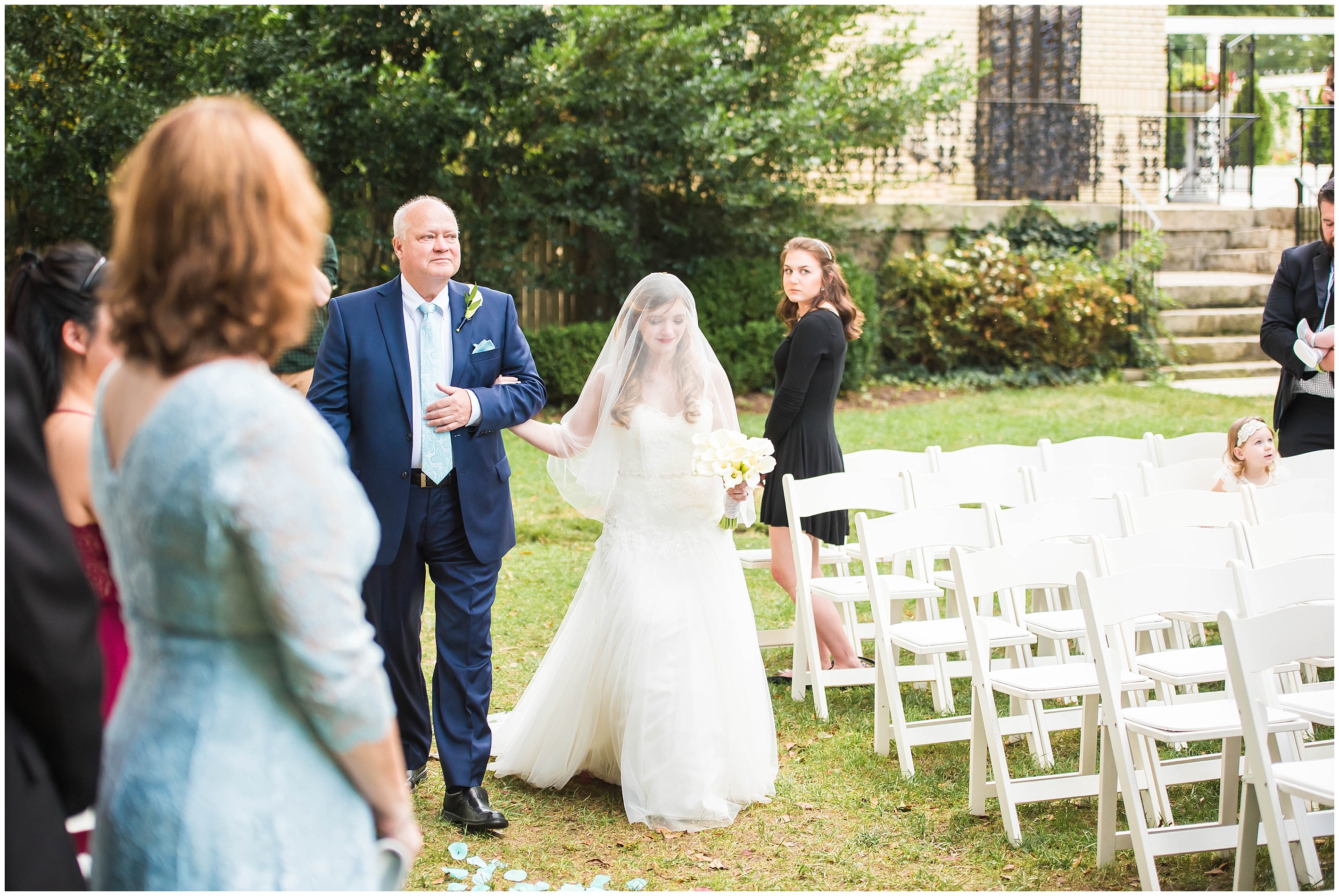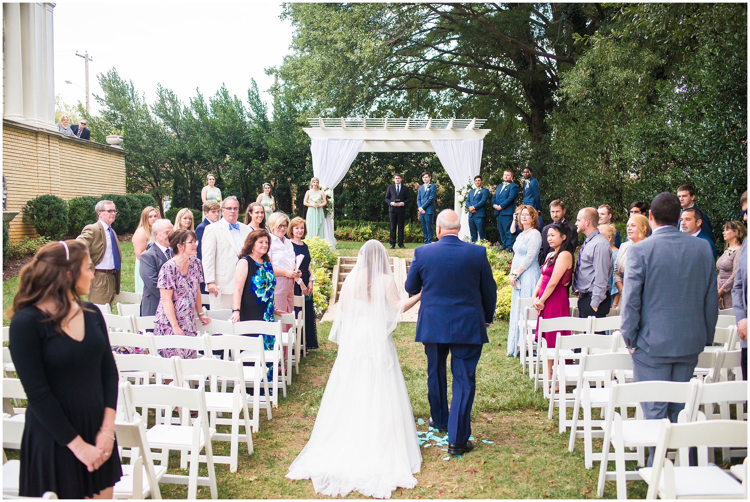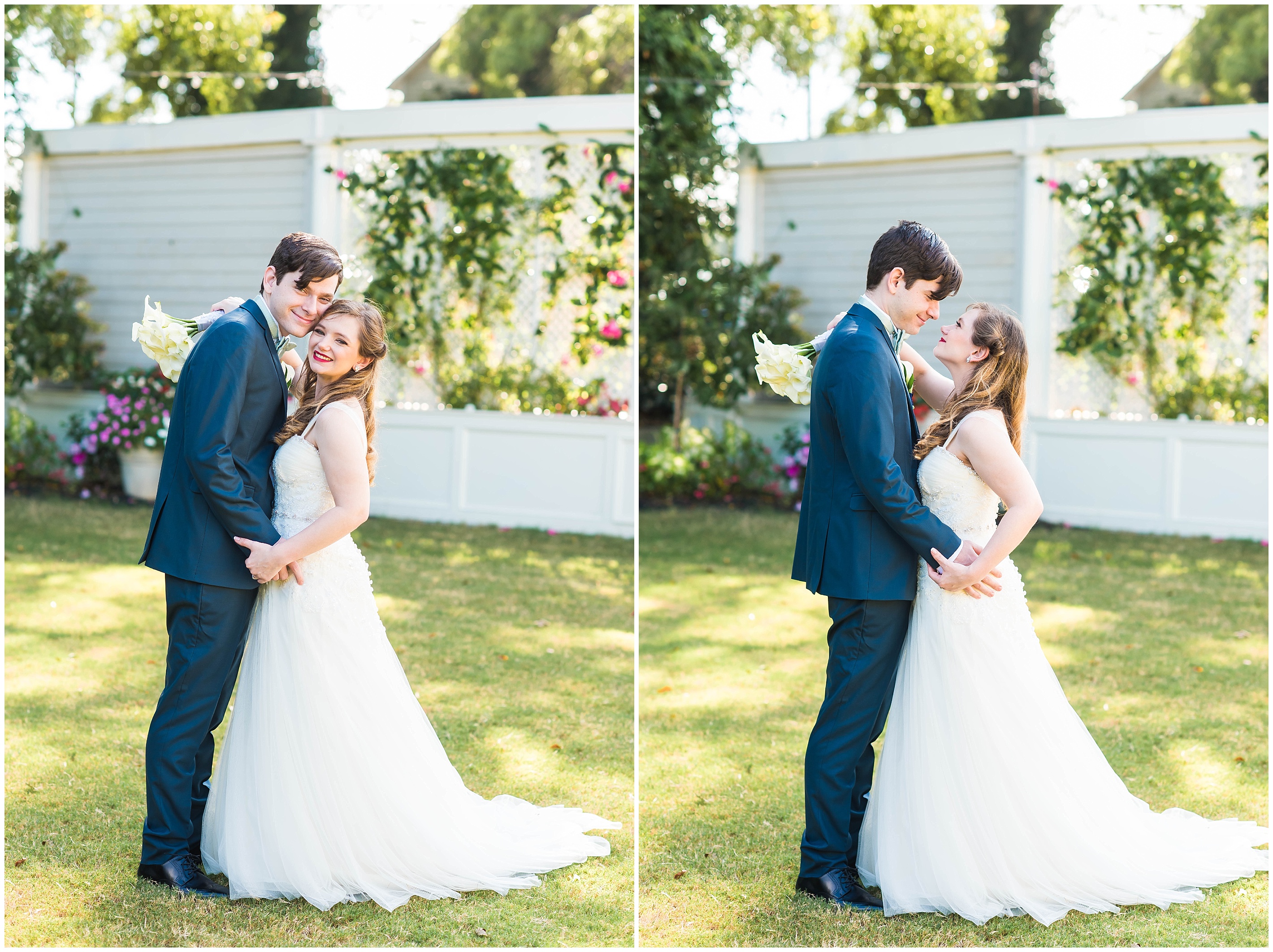 Before Sarah got dressed, Sophie, Sarah’s niece & flower girl, got to put on Sarah’s princess dress, which she was so excited to do! Sophie was one of the most behaved & cooperative flower girls, and she is only 2 years old! Sarah and Zach shared a first look on their wedding day, which was oh so special! I was so glad that we were able to do their portraits then because it down-poured immediately following their ceremony! They had a very quick & emotional ceremony, but I loved their processional & recessional songs, which were from Tangled & Harry Potter (two amazing choices!) Their sunny & beautiful outdoor ceremony was so perfect. After completing quick extended family photos we felt raindrops, and immediately dashed inside before the curtain of rain reached us. We did some quick portraits inside before getting Sarah bustled & having them enjoy their cocktail hour with their guests.