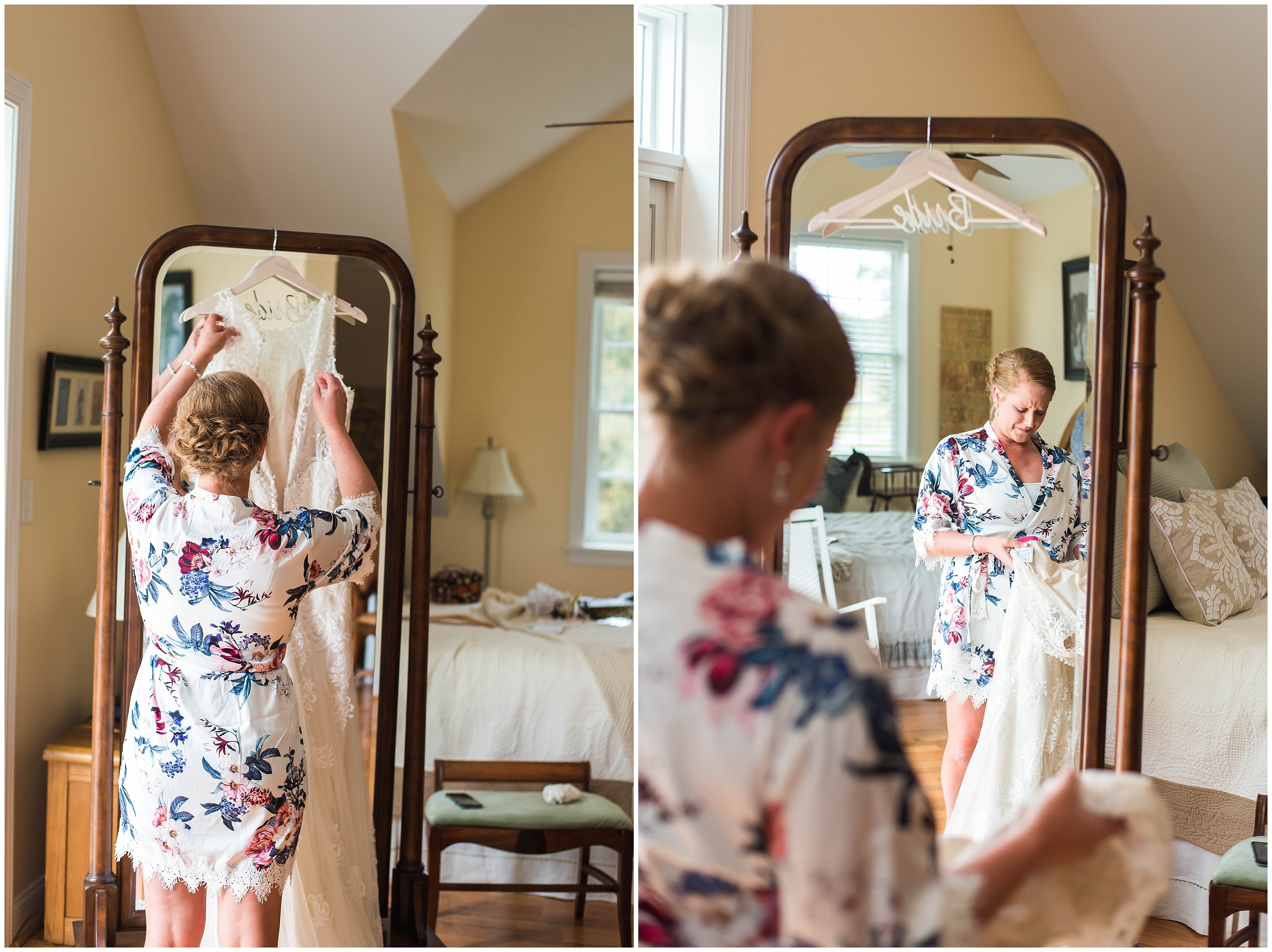 I have been so lucky this past year with some of the best couples in the world! These two definitely deserve a prize for rolling with ALL the punches for their wedding! Carson & John met in one of their favorite spots, somewhere they visited all the time, Atlantic Beach, so when they got engaged it was a no-brainer to have their wedding there! Mother Nature had other plans though when Hurricane Florence made it way across the coast and ruined their venue. They made the change to move it to Carson’s hometown of Rougemont, NC, having to find some new vendors along the way that couldn’t make the switch, along with a new venue! Talk about stressful, and all of this happened a month before their wedding date. Needless to say, the day was perfect no matter where it was, and although the morning was rainy & overcast, the sun came out right when we started pictures, and it was perfect out!