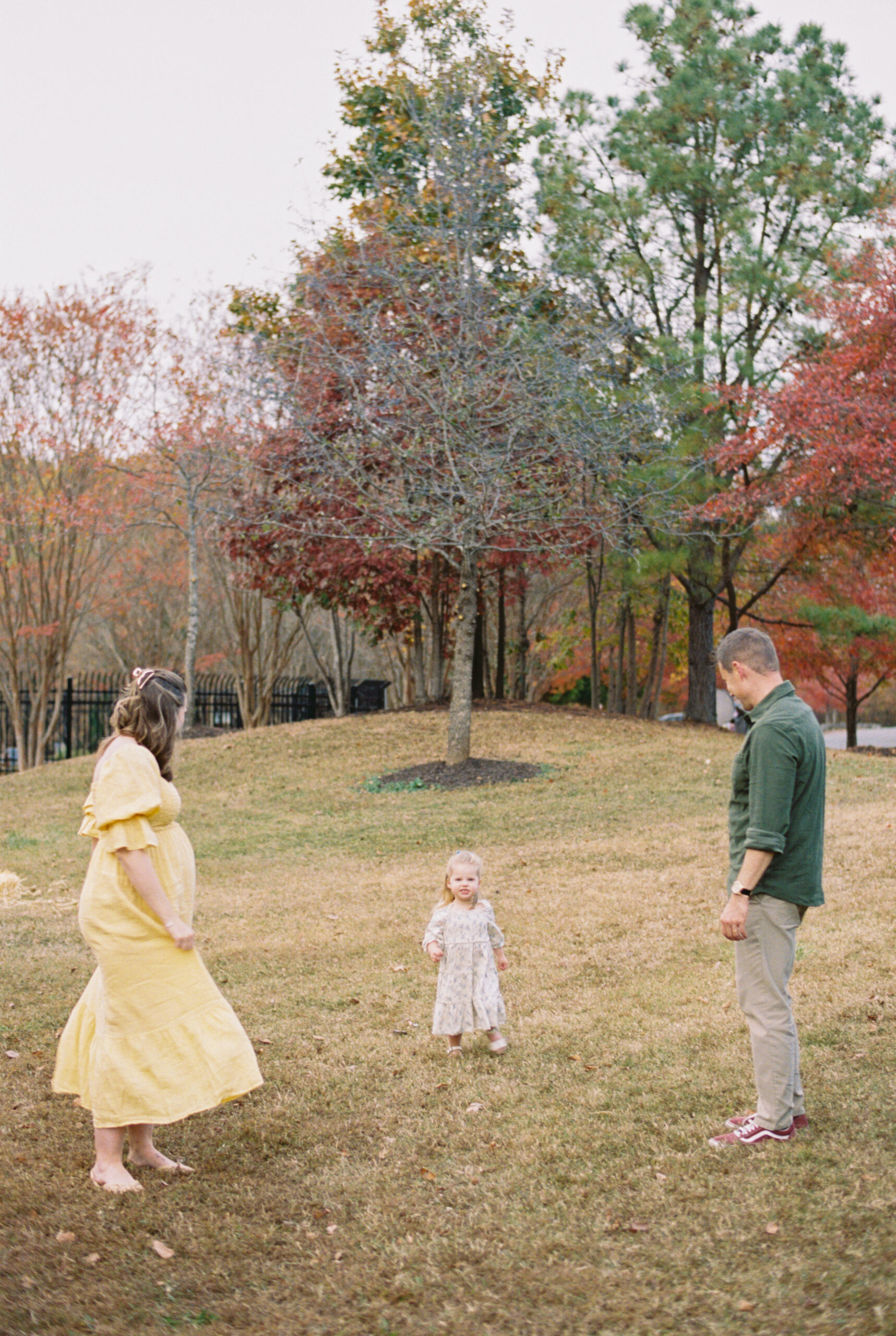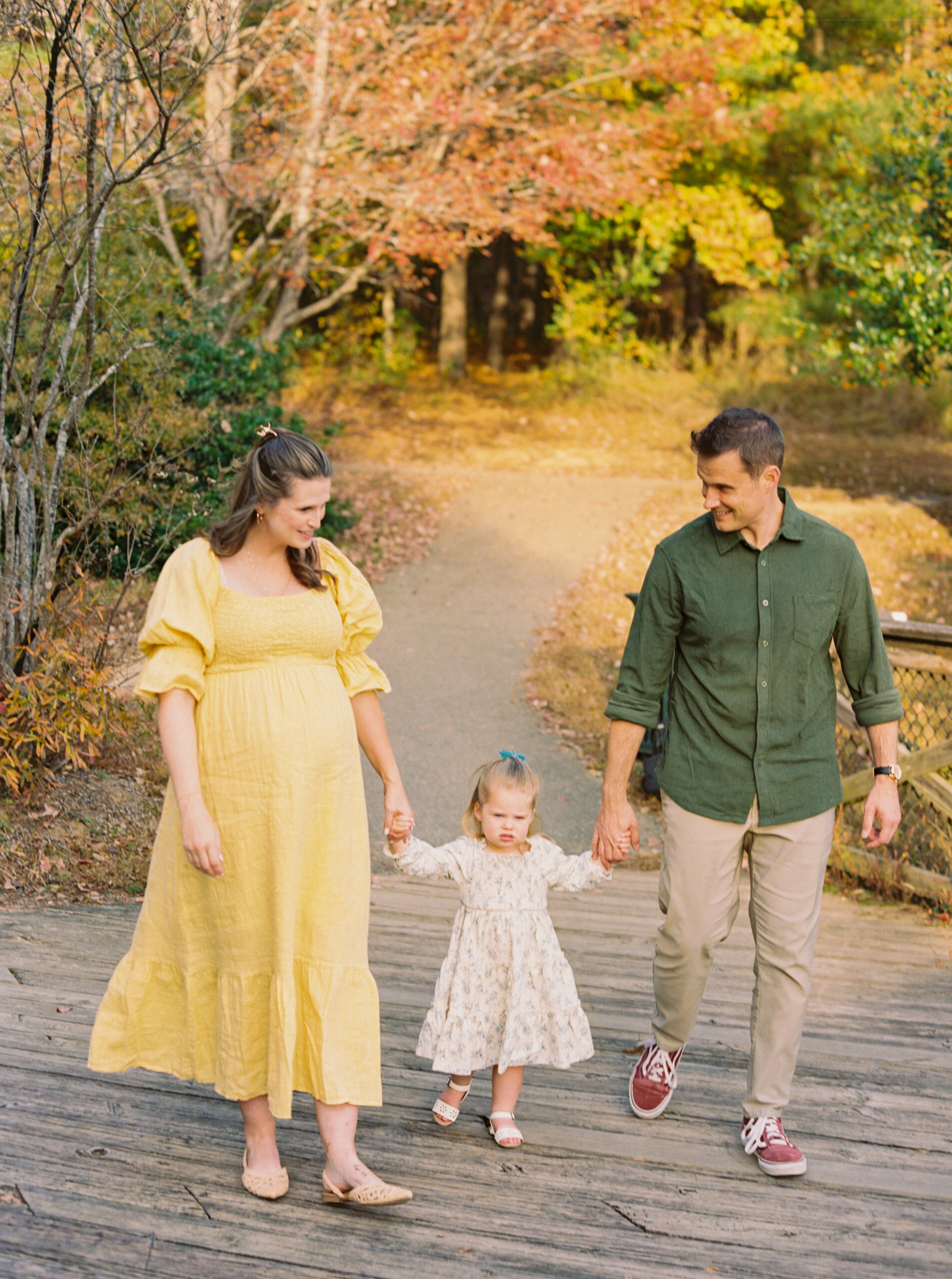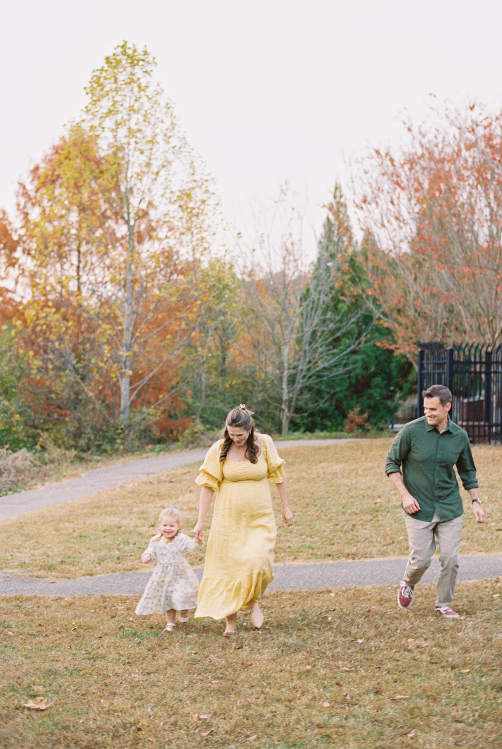 Fall on film is one of the most gorgeous things, in my opinion. I photographed T&J’s wedding almost 5 years ago at The Bradford in North Carolina, and this Fall they moved up to T’s hometown of Richmond, VA. So when they asked if I would drive up to do their maternity photos, I was so excited. We got some of the prettiest fall colors, even though the sun decided to disappear at the beginning of the session, the trees were really showing off.