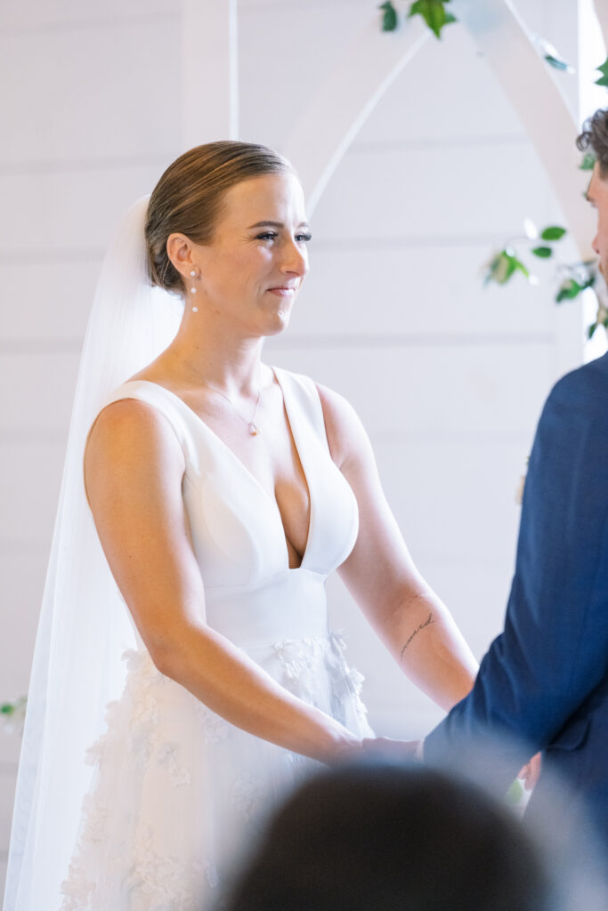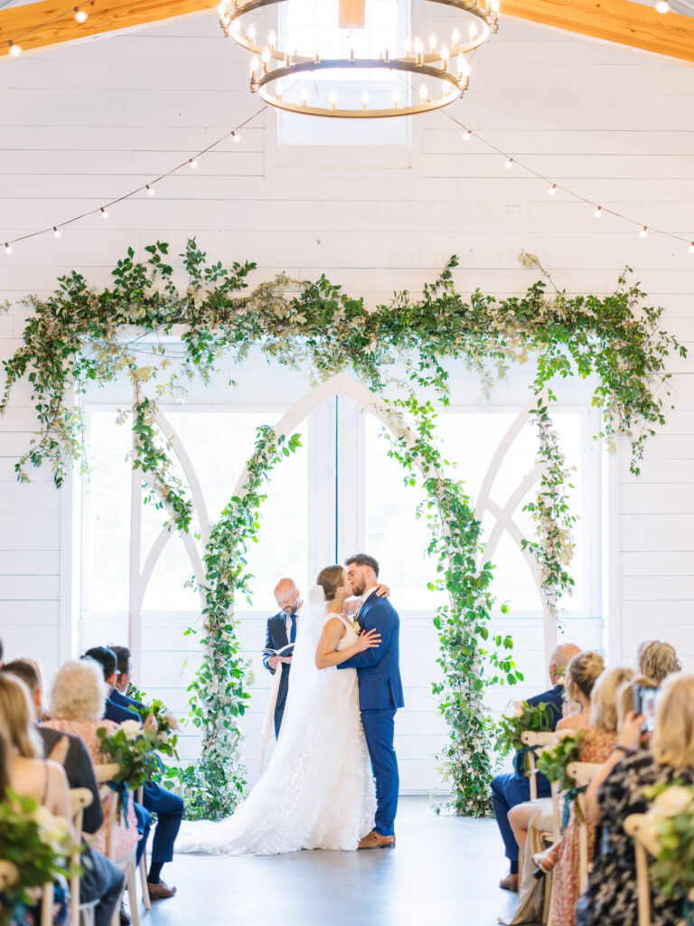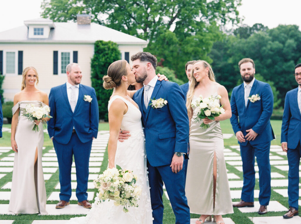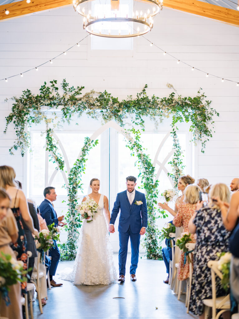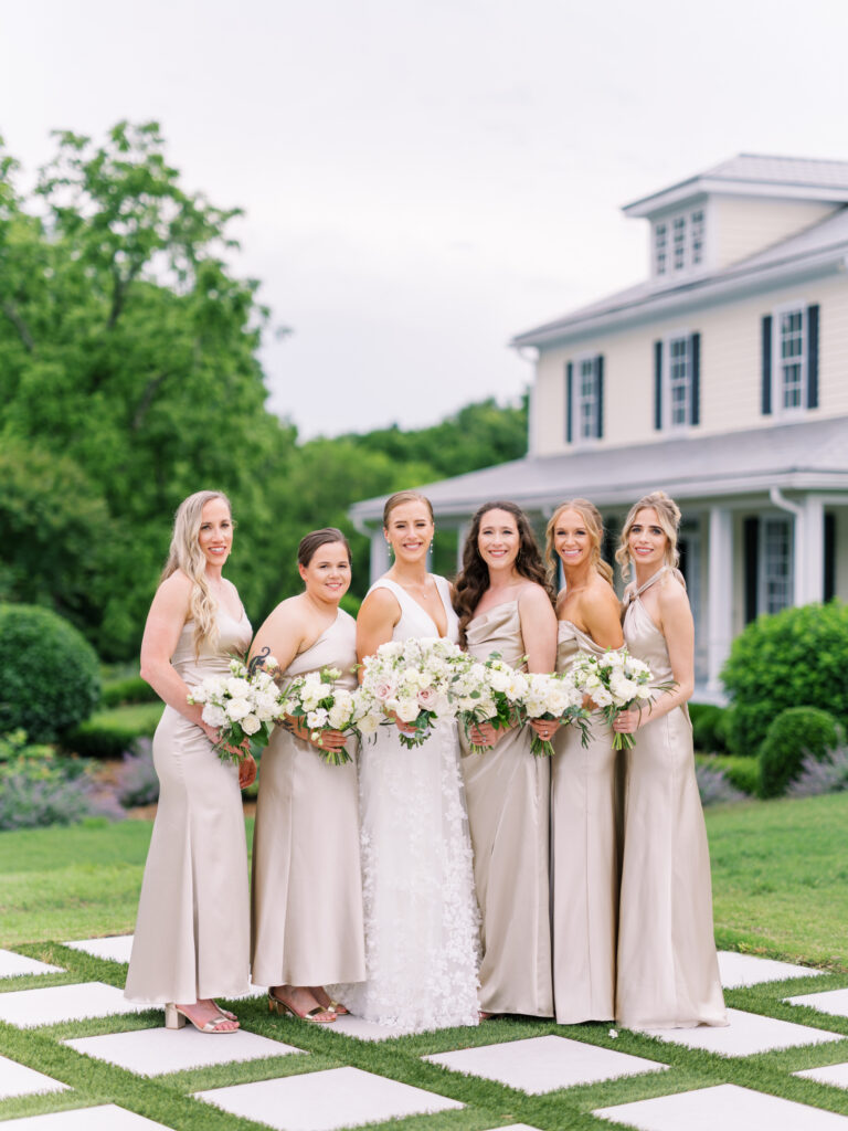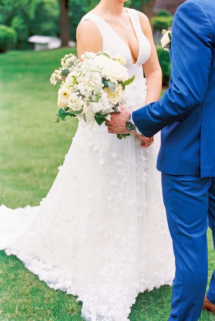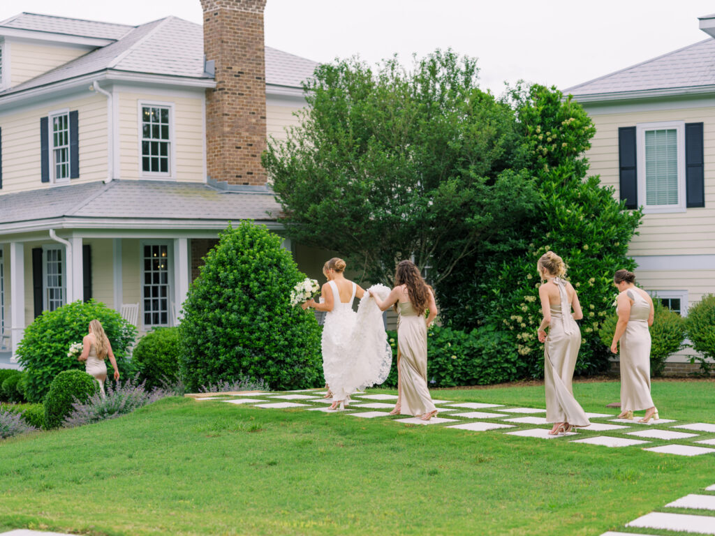 One West Coast girl and one New England boy met and fell in love in Durham, North Carolina. They brought their loved ones together to their new home to celebrate their wedding day—a neutral color palette for white florals and beige bridesmaids, with the Groom and groomsmen in navy. Whimsical florals from Once Gathered truly brought this floral-filled wedding day to life.