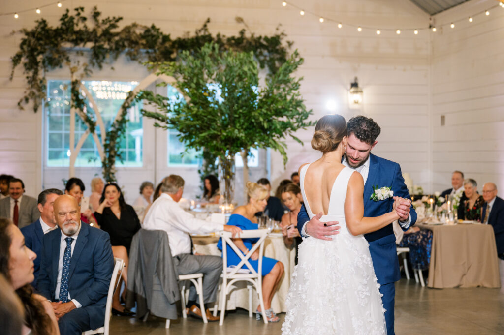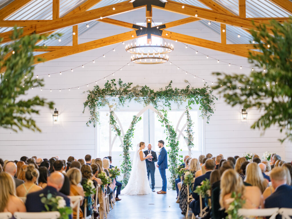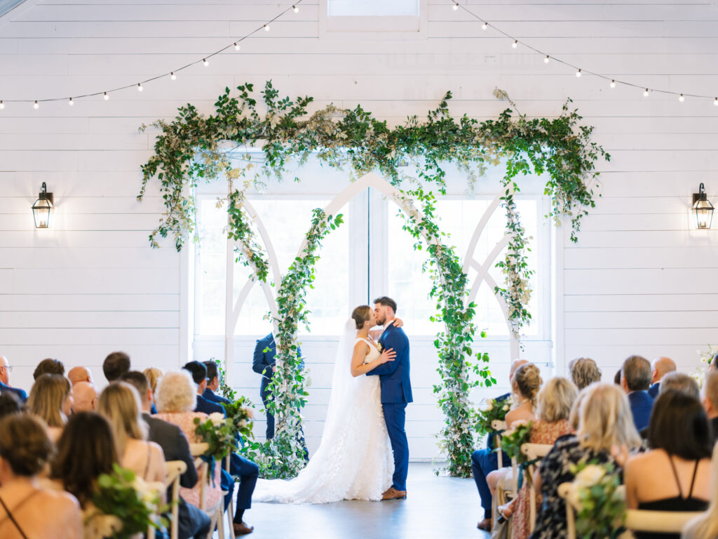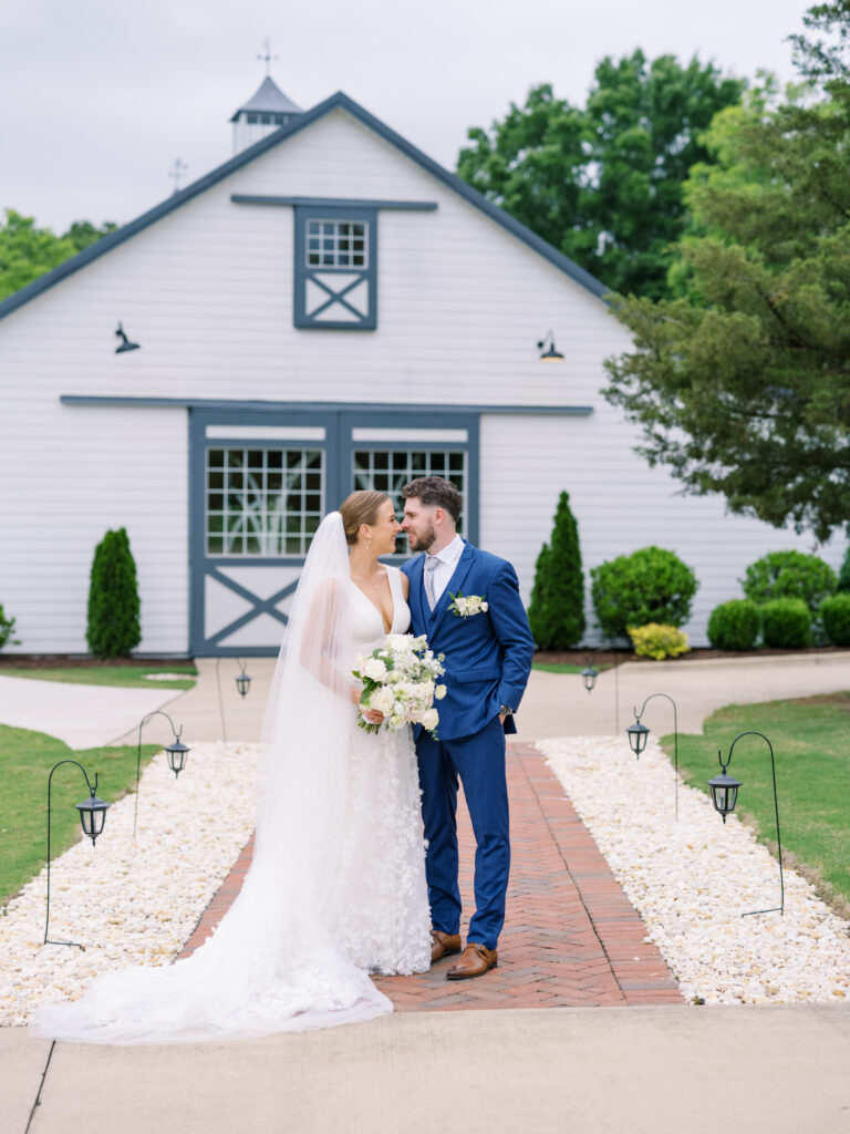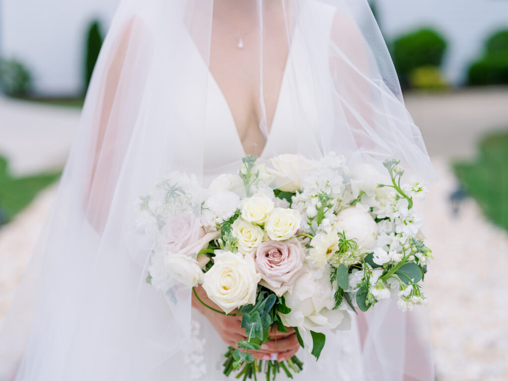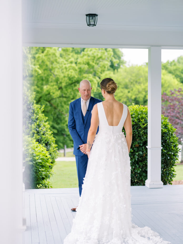One West Coast girl and one New England boy met and fell in love in Durham, North Carolina. They brought their loved ones together to their new home to celebrate their wedding day—a neutral color palette for white florals and beige bridesmaids, with the Groom and groomsmen in navy. Whimsical florals from Once Gathered truly brought this floral-filled wedding day to life.