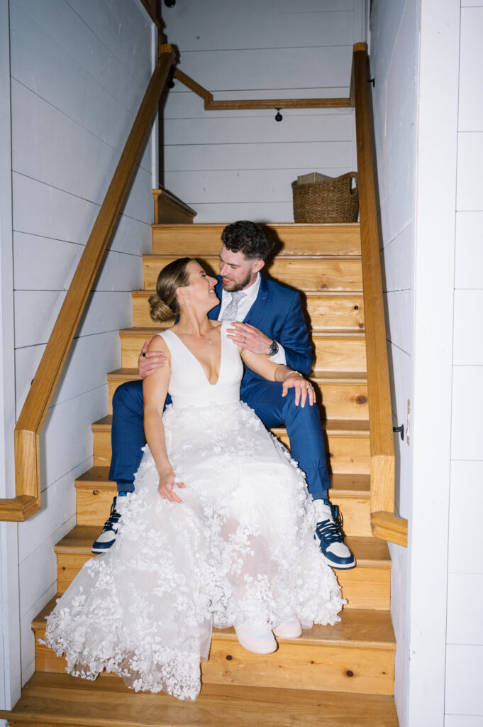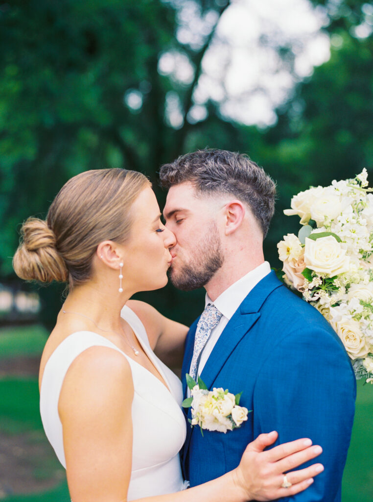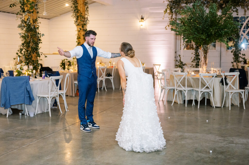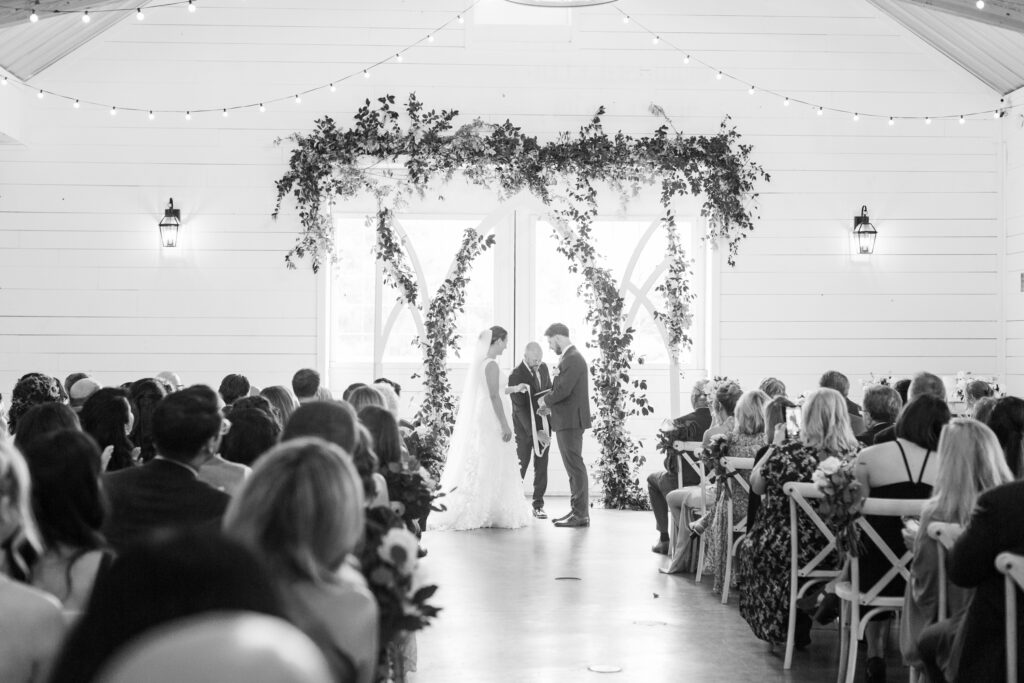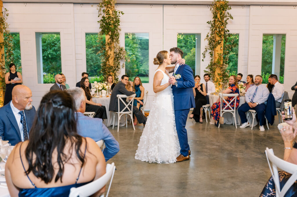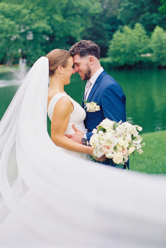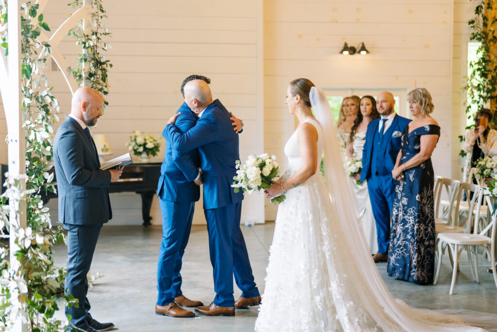 One West Coast girl and one New England boy met and fell in love in Durham, North Carolina. They brought their loved ones together to their new home to celebrate their wedding day—a neutral color palette for white florals and beige bridesmaids, with the Groom and groomsmen in navy. Whimsical florals from Once Gathered truly brought this floral-filled wedding day to life.