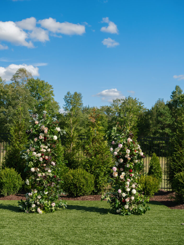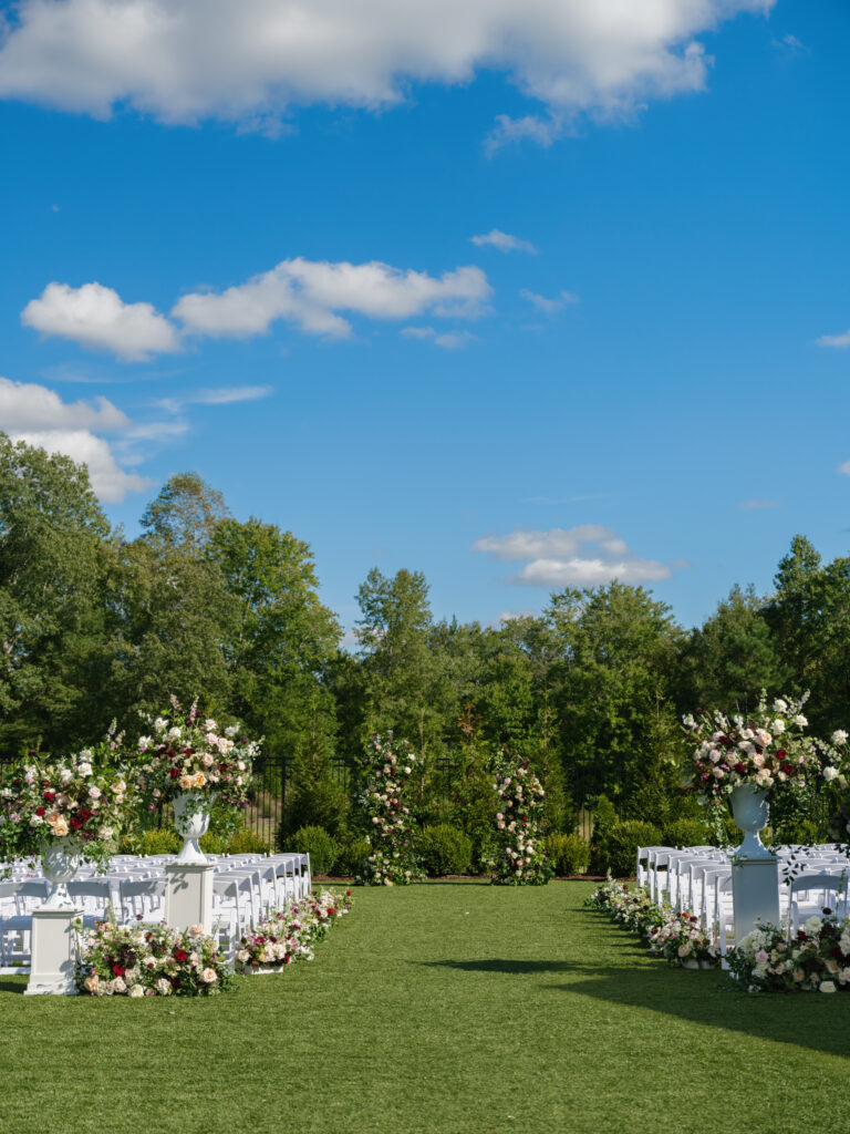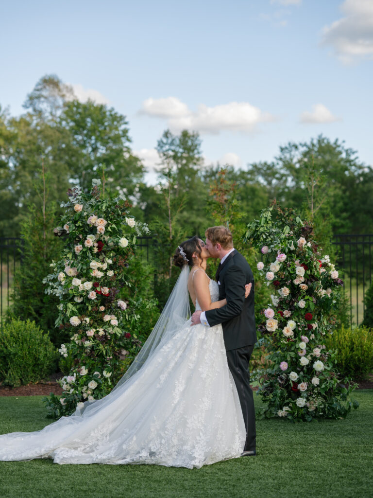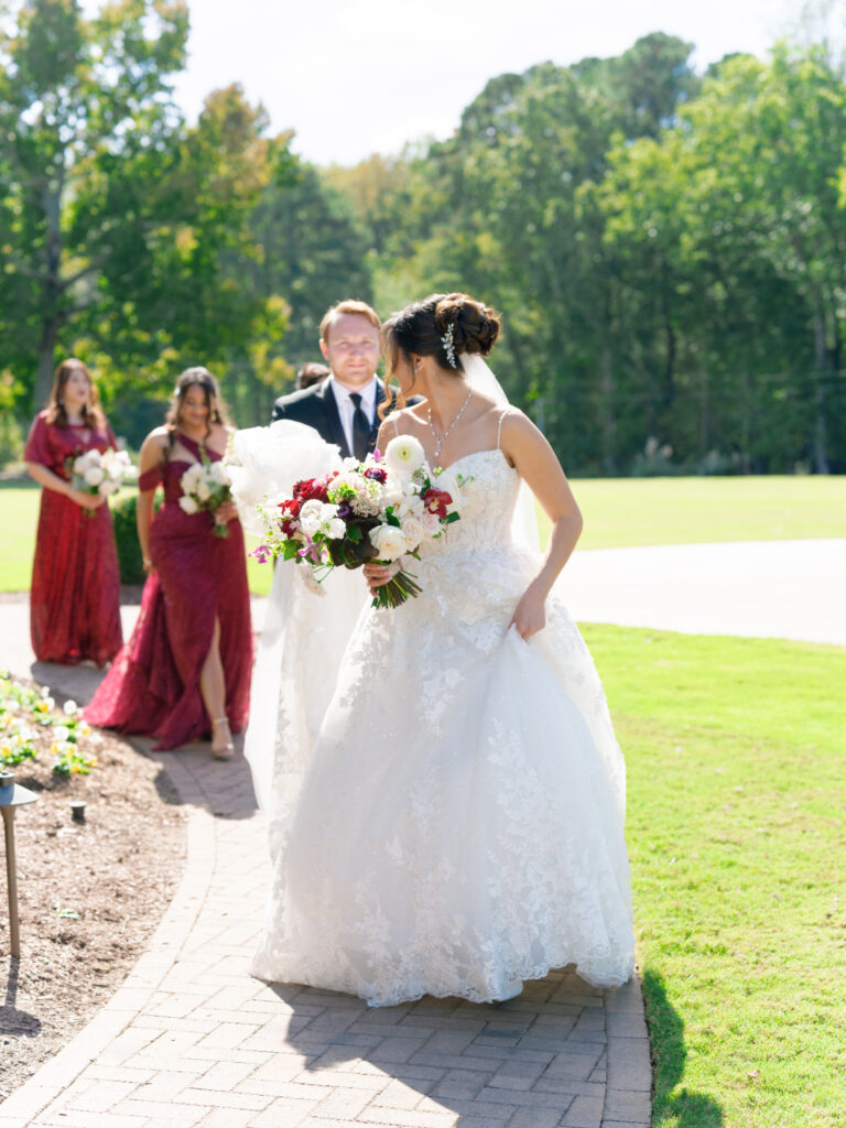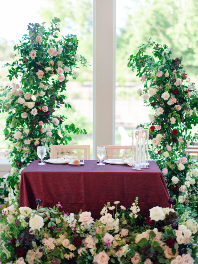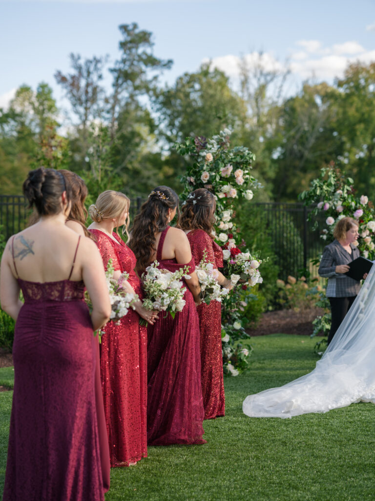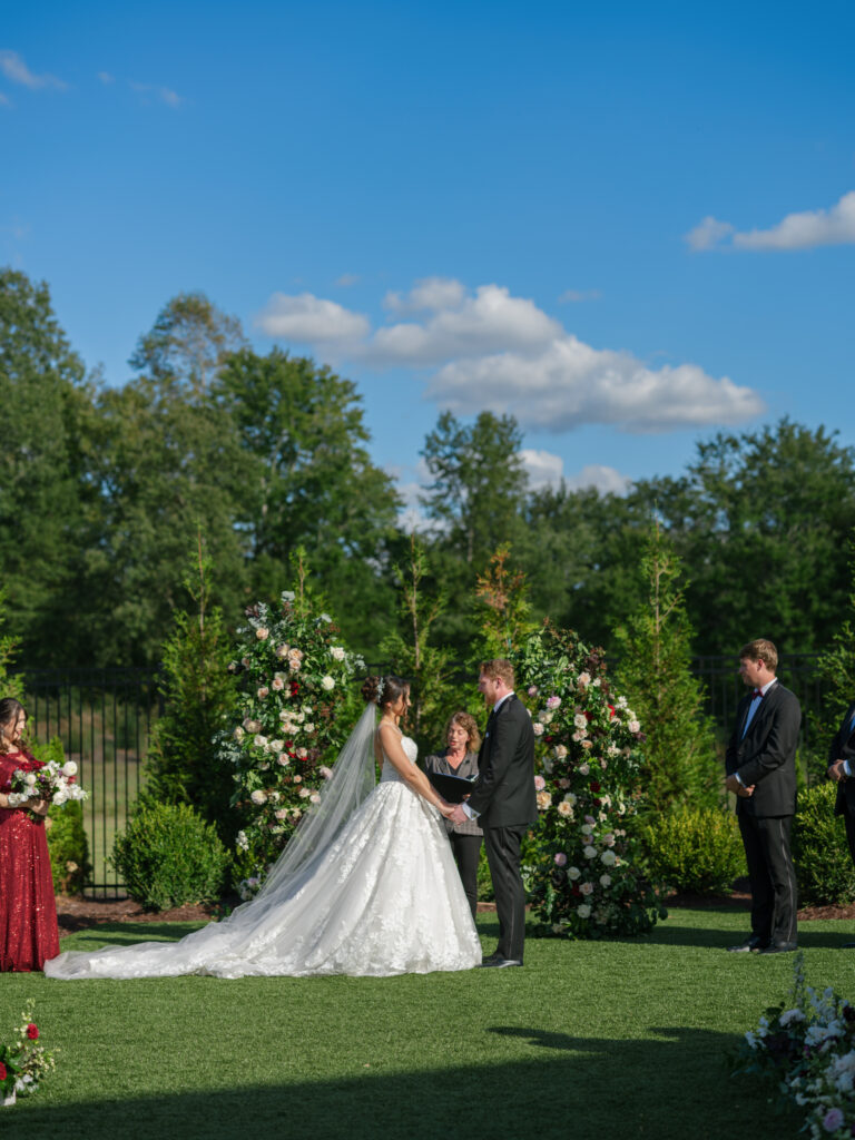 Set against the picturesque grounds of Donovan’s Manor, Hoda & Alex’s ceremony was both heartfelt and refined. The rich burgundy florals paired with soft greenery framed the space beautifully, adding depth and warmth to the already stunning backdrop.