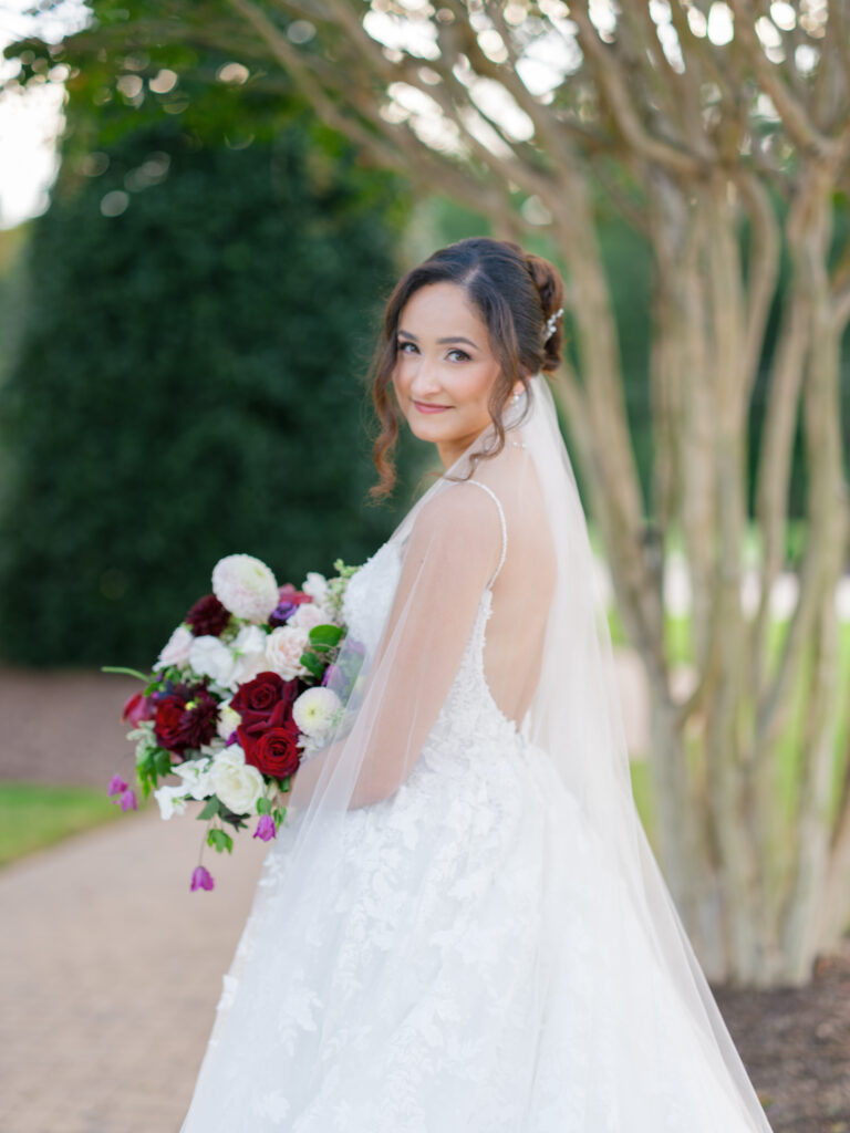 Fall at Donovan’s Manor offers the dreamiest light, and Hoda & Alex took full advantage of it. The golden tones of the season paired effortlessly with their classic style, while the burgundy accents added a romantic richness to every image. The estate grounds provided an array of timeless backdrops, allowing for portraits that felt both elegant and natural.