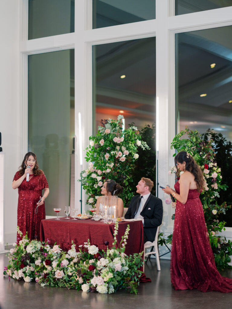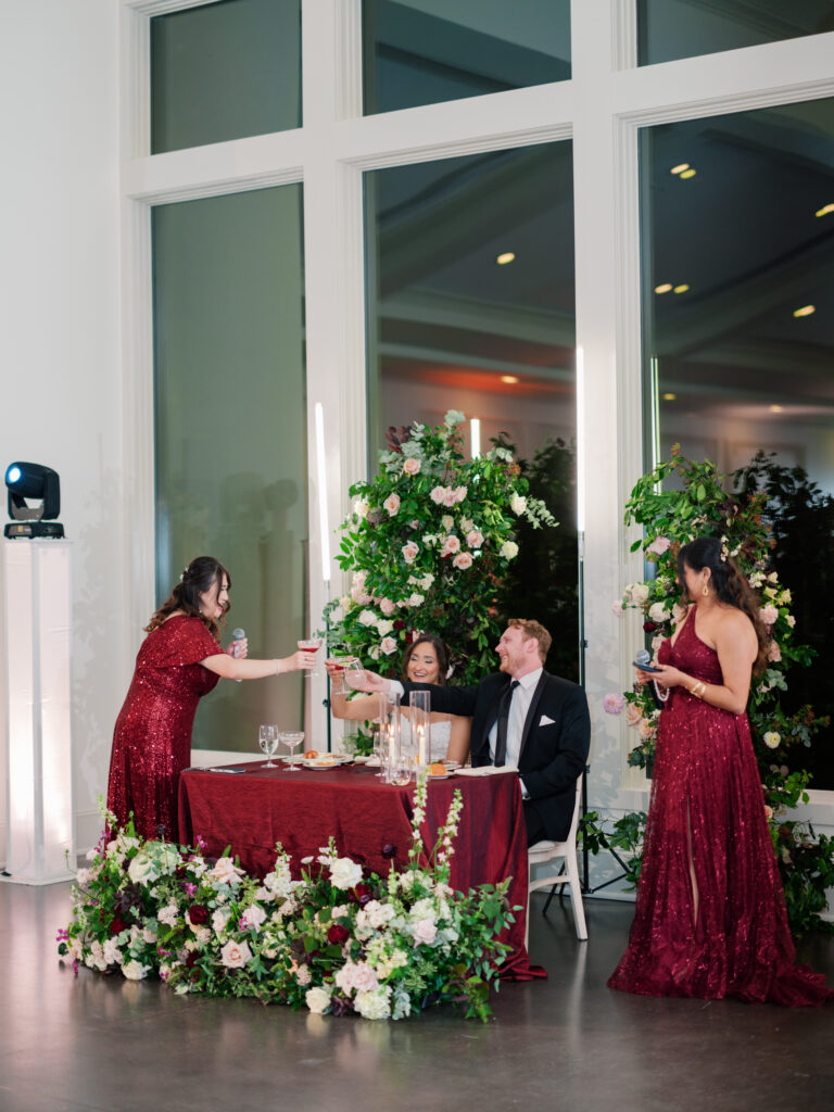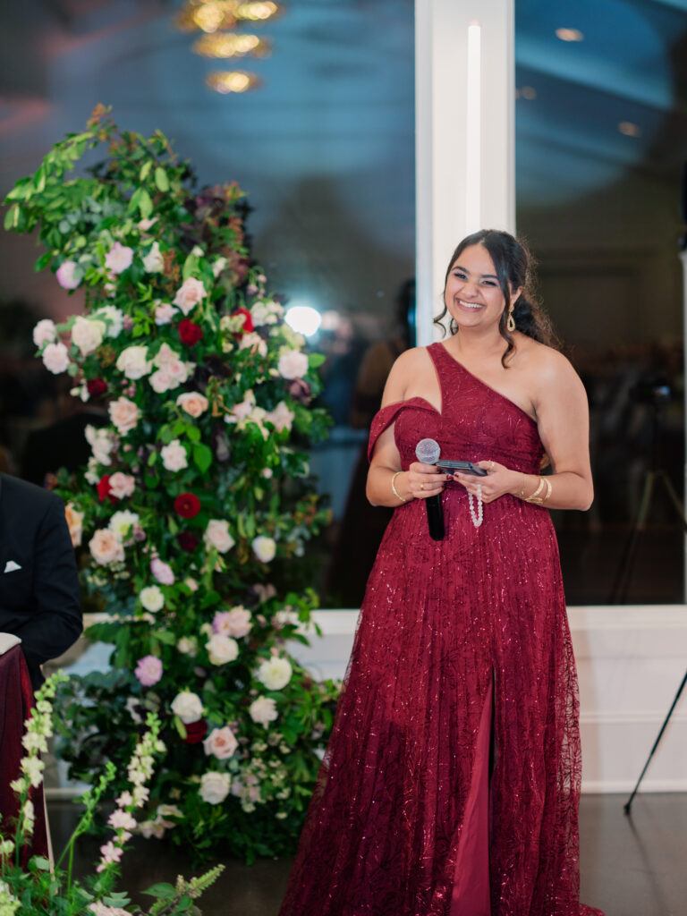 The rich burgundy details glowed under candlelight, enhancing the warmth of the space and perfectly capturing the essence of fall. Heartfelt toasts, nonstop dancing, and meaningful traditions carried the celebration late into the night.